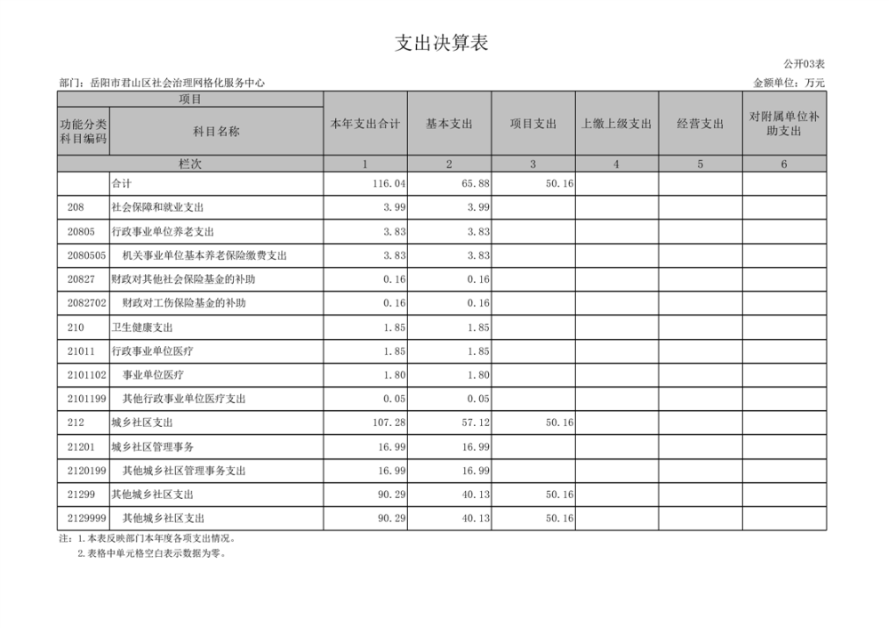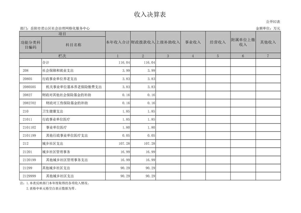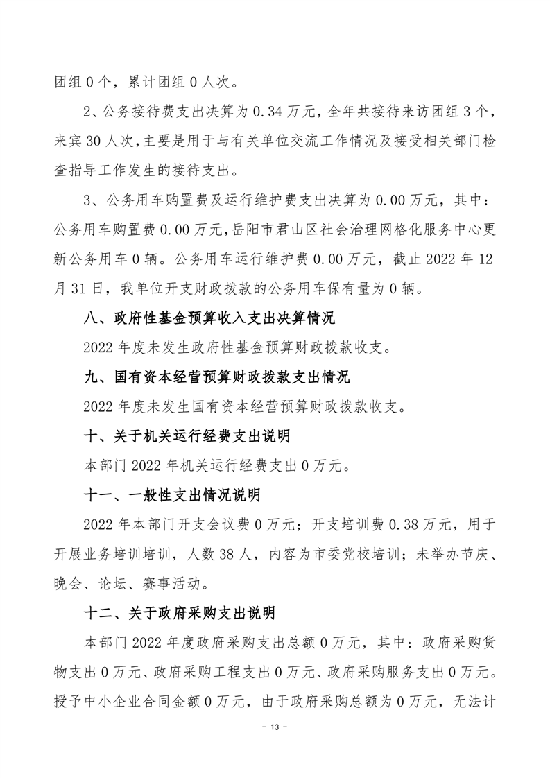 2022年度岳阳市君山区社会治理网格化服务中心部门决算公开说明