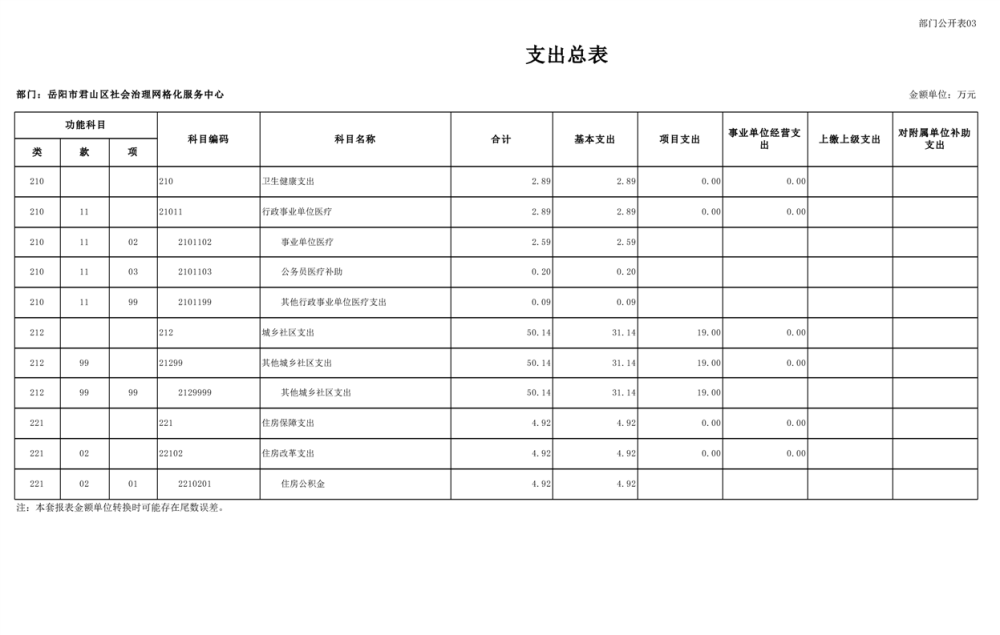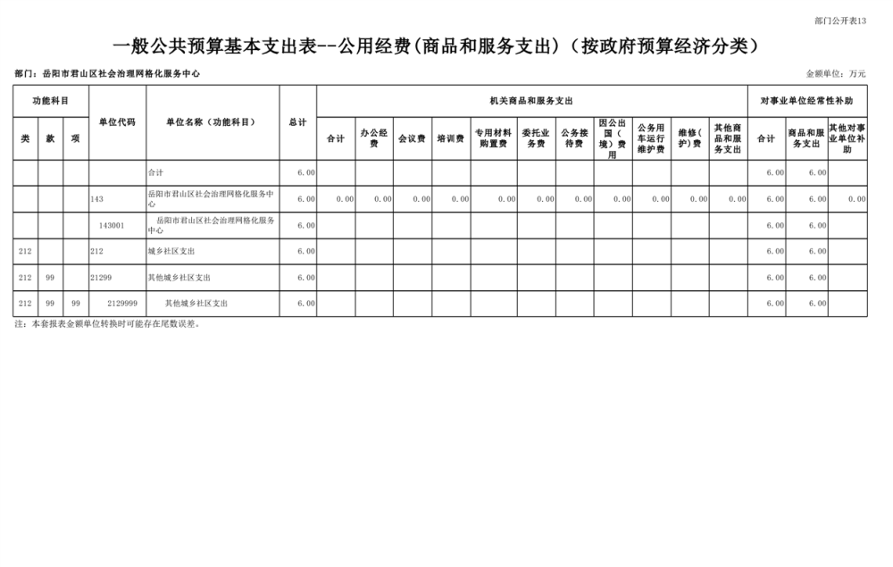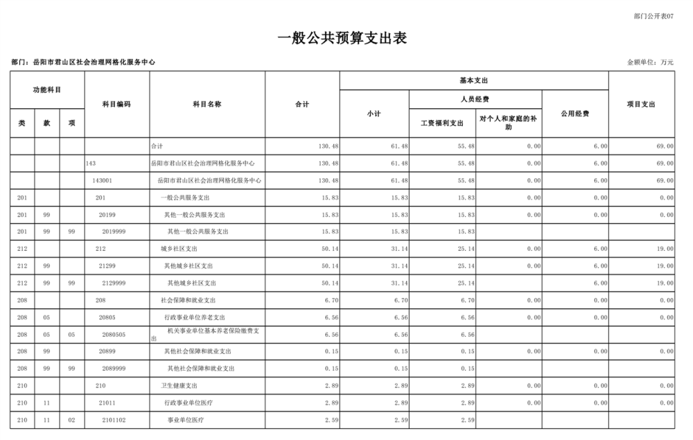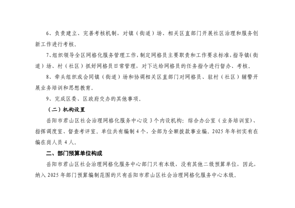 2025年岳阳市君山区社会治理网格化服务中心部门预算公开