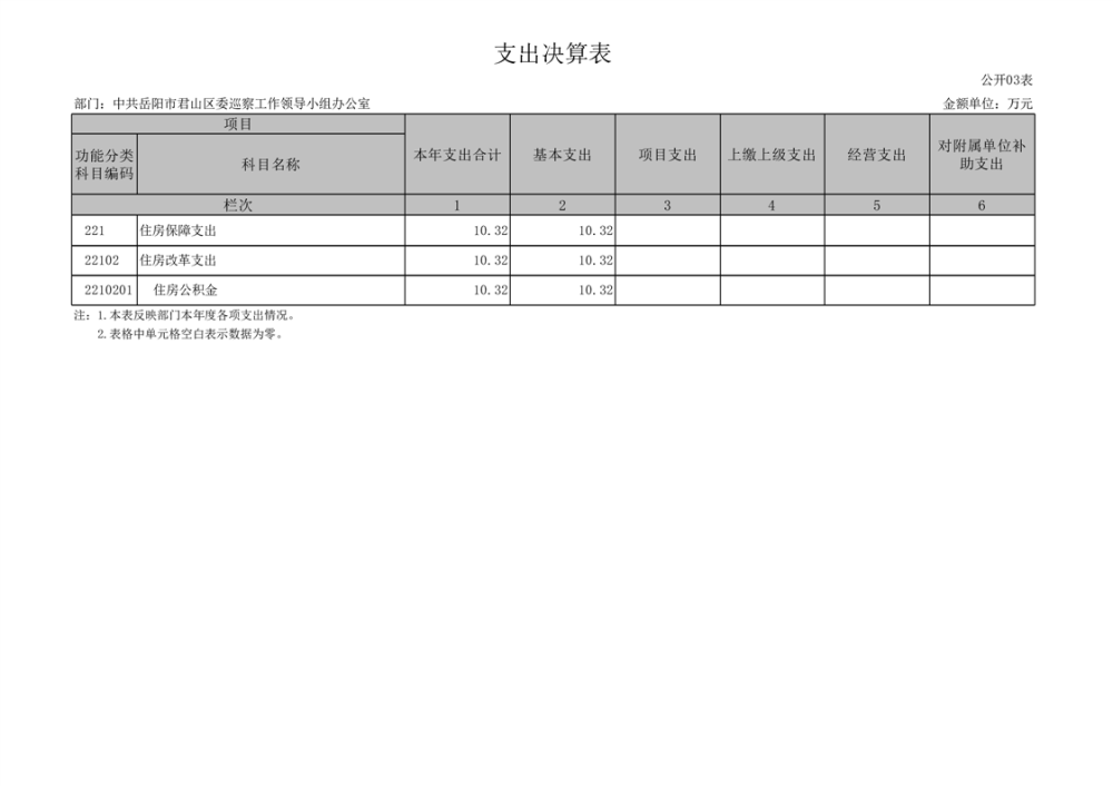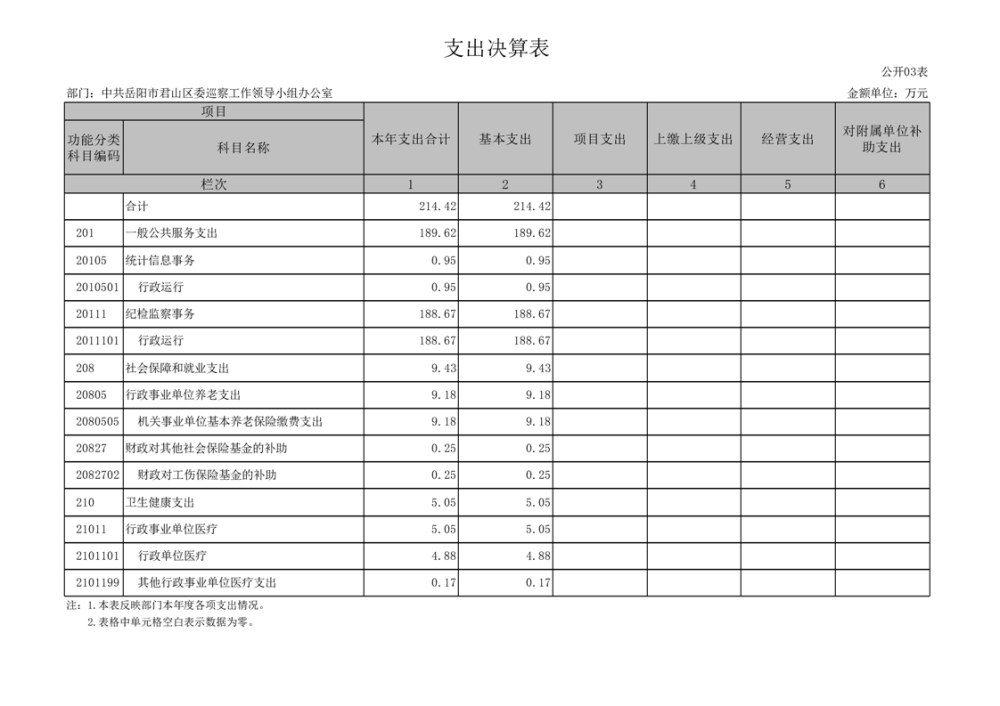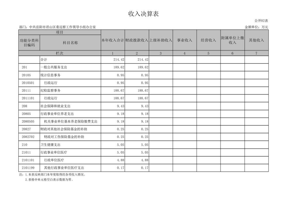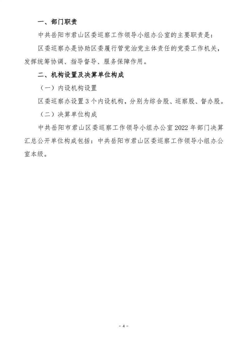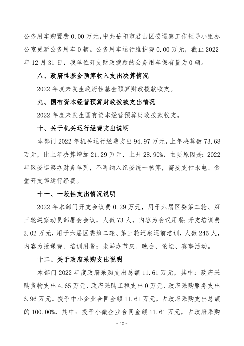 2022年度中共岳阳市君山区委巡察工作领导小组办公室部门决算公开