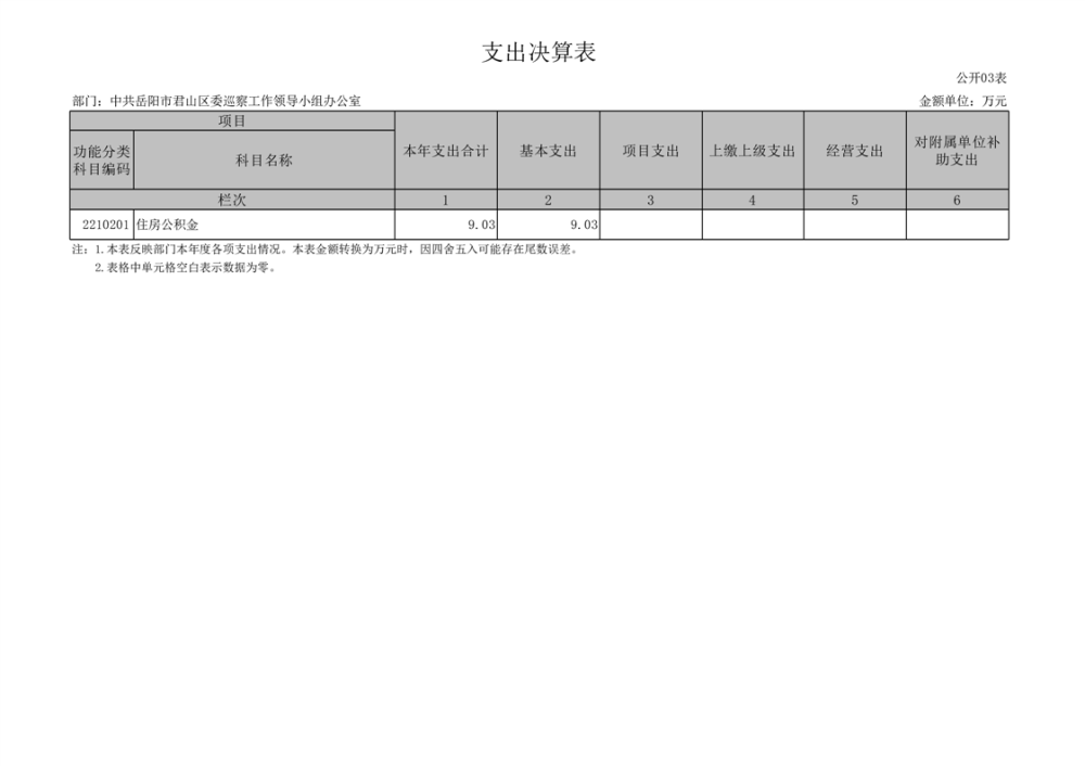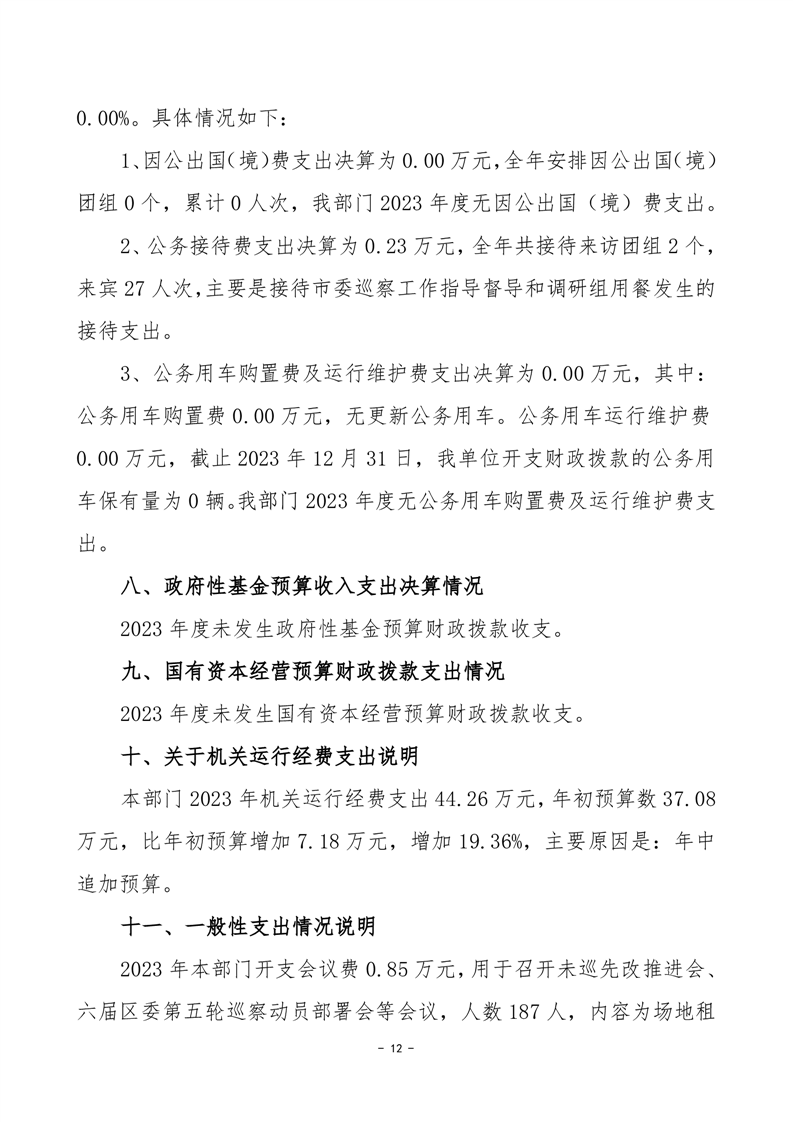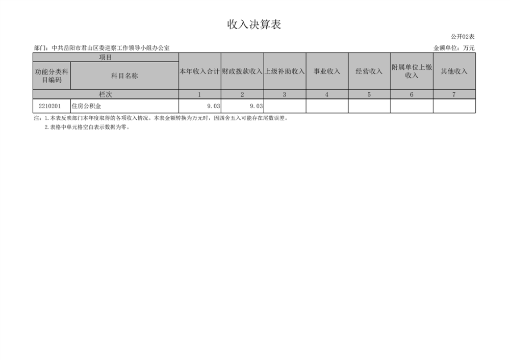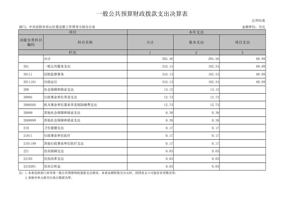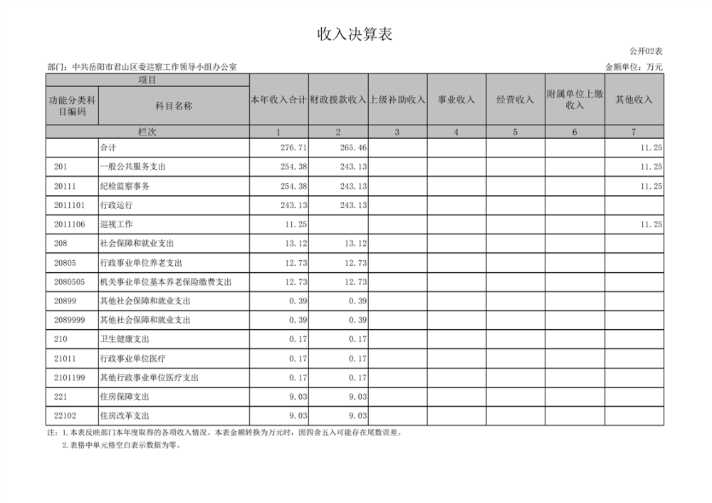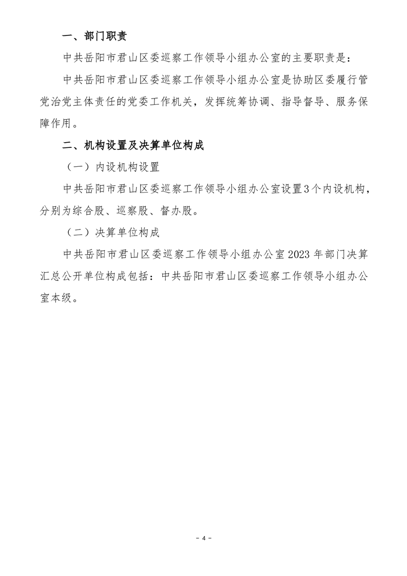 2023年度中共岳阳市君山区委巡察工作领导小组办公室部门决算公开
