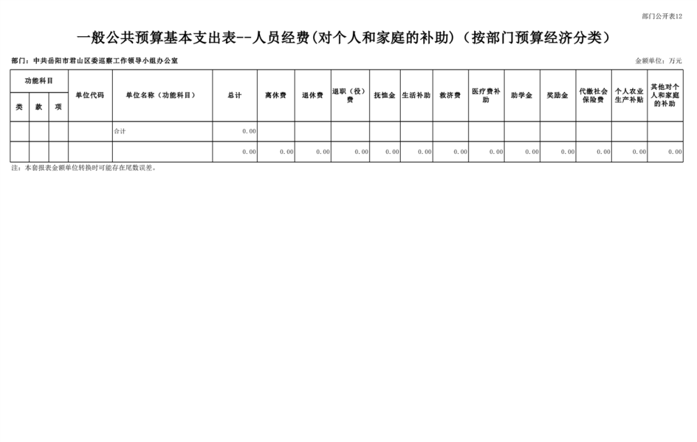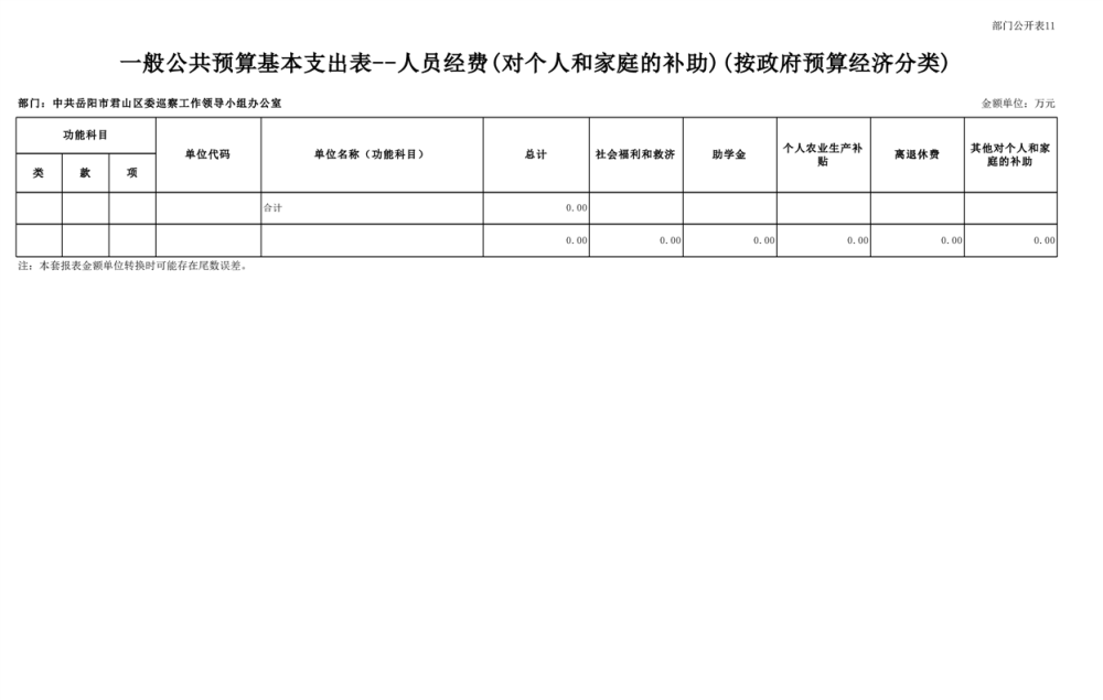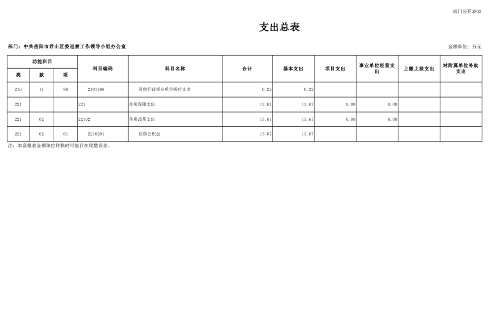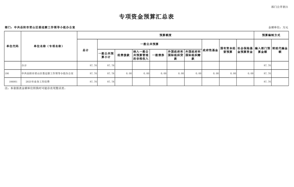 2025年中共岳阳市君山区委巡察工作领导小组办公室部门预算公开