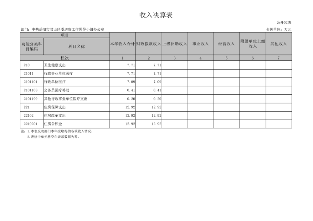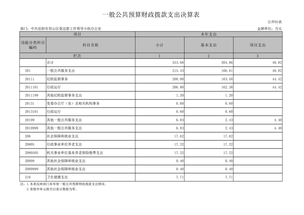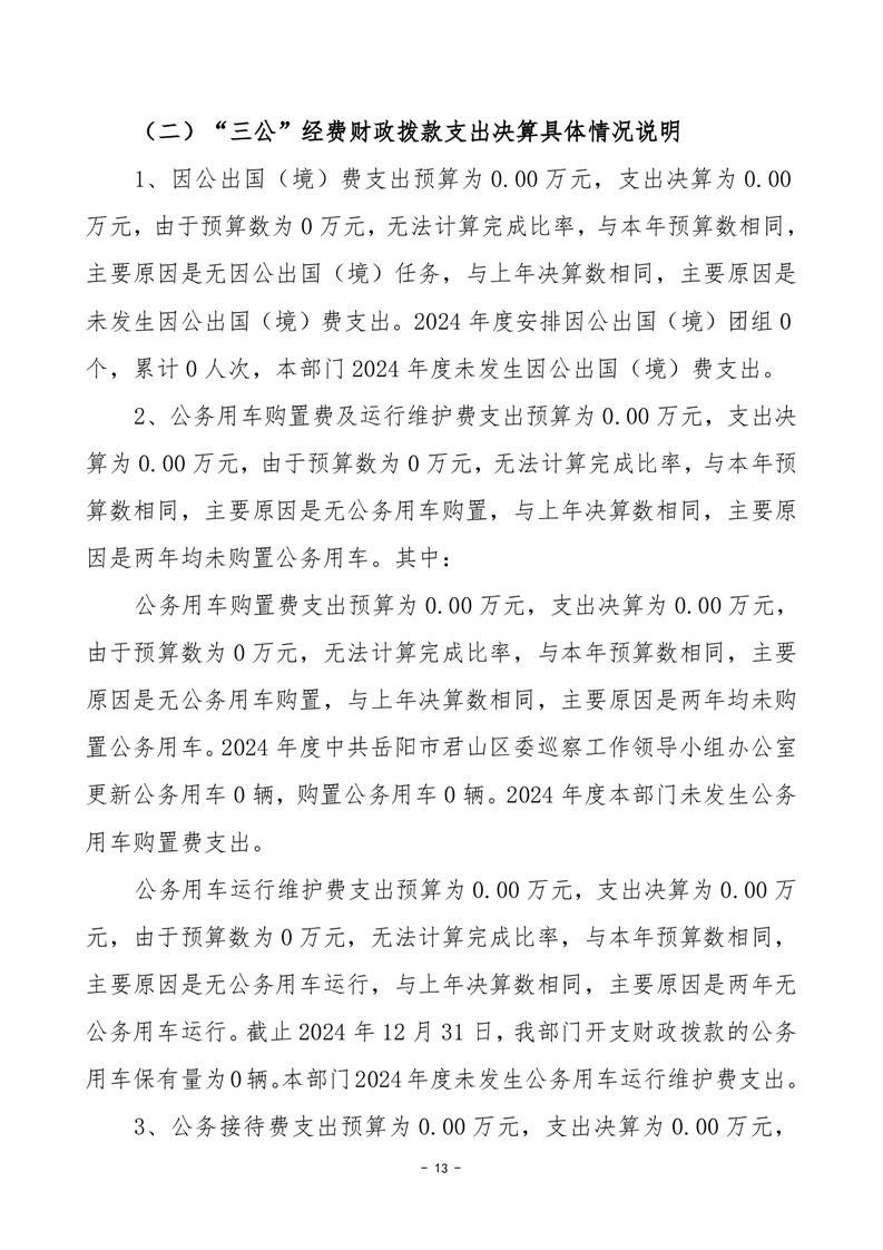 2024年度中共岳阳市君山区委巡察工作领导小组办公室部门决算公开