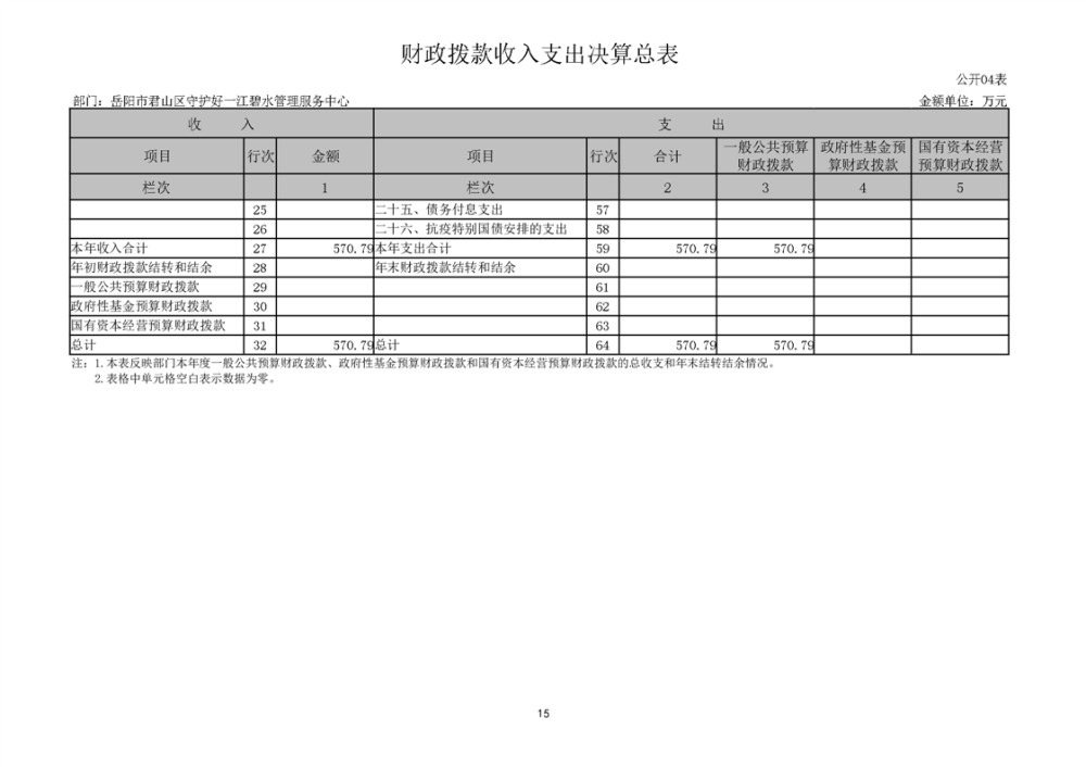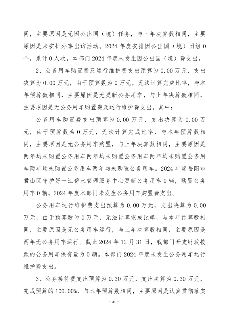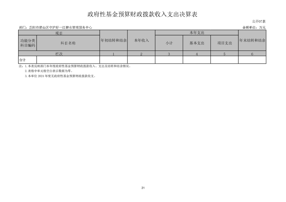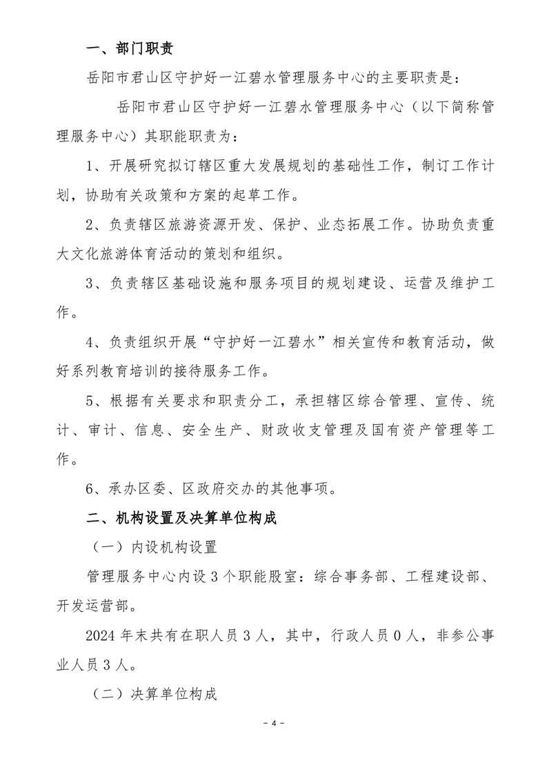 2024年度岳阳市君山区守护好一江碧水管理服务中心部门决算公开