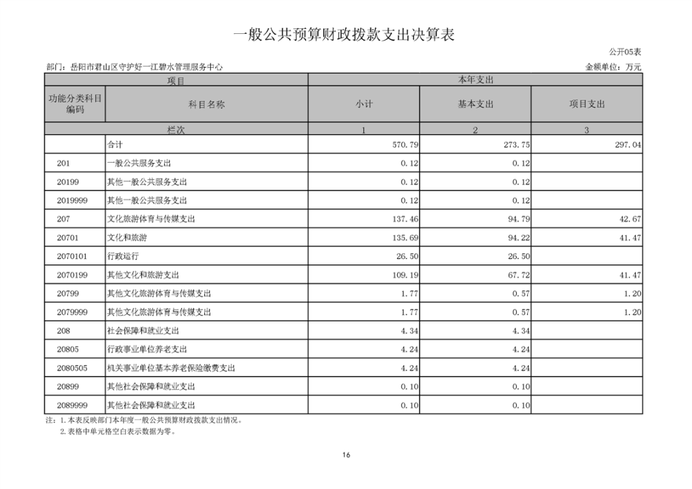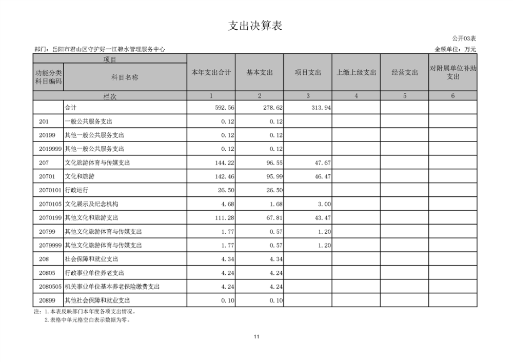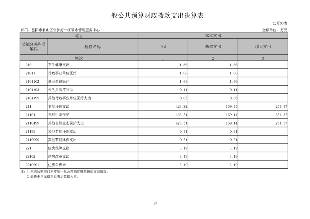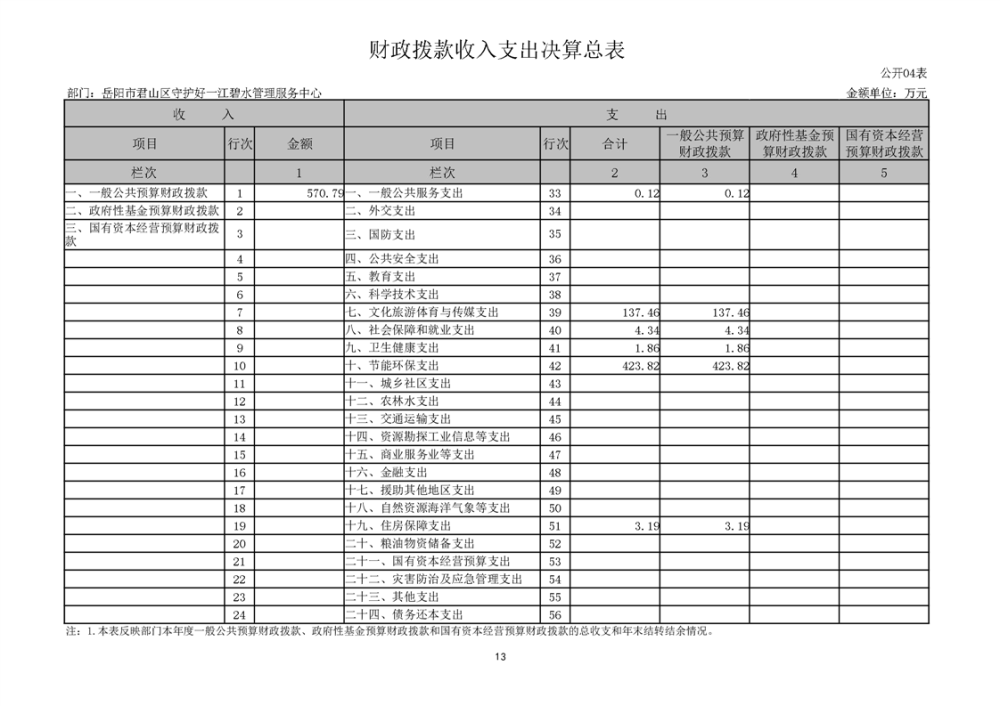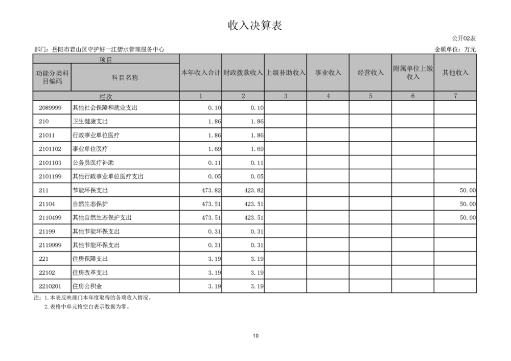 2024年度岳阳市君山区守护好一江碧水管理服务中心部门决算公开