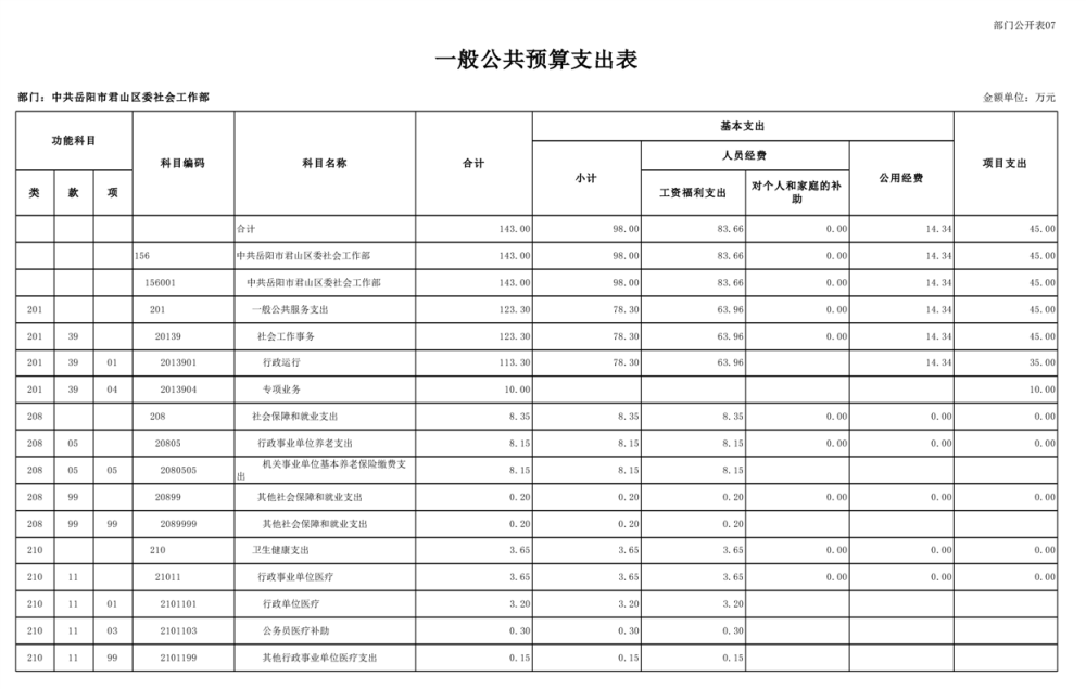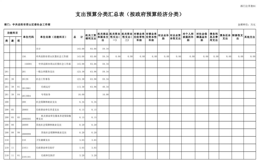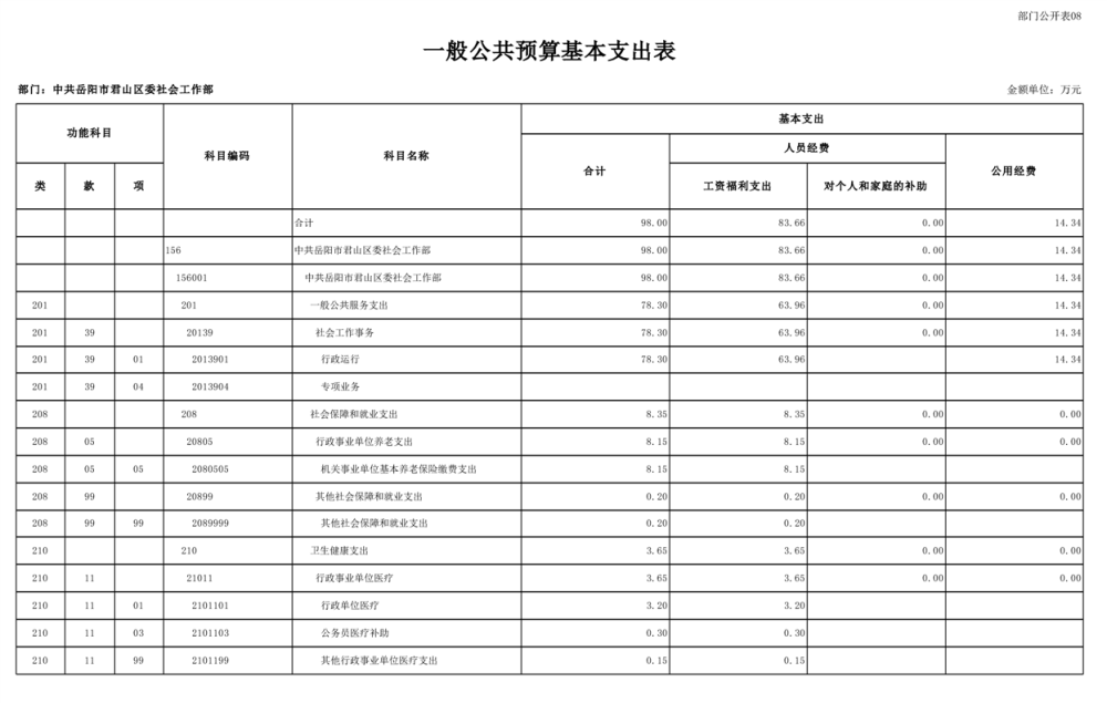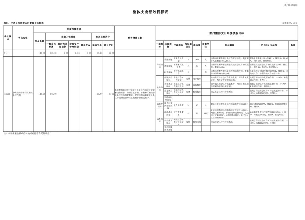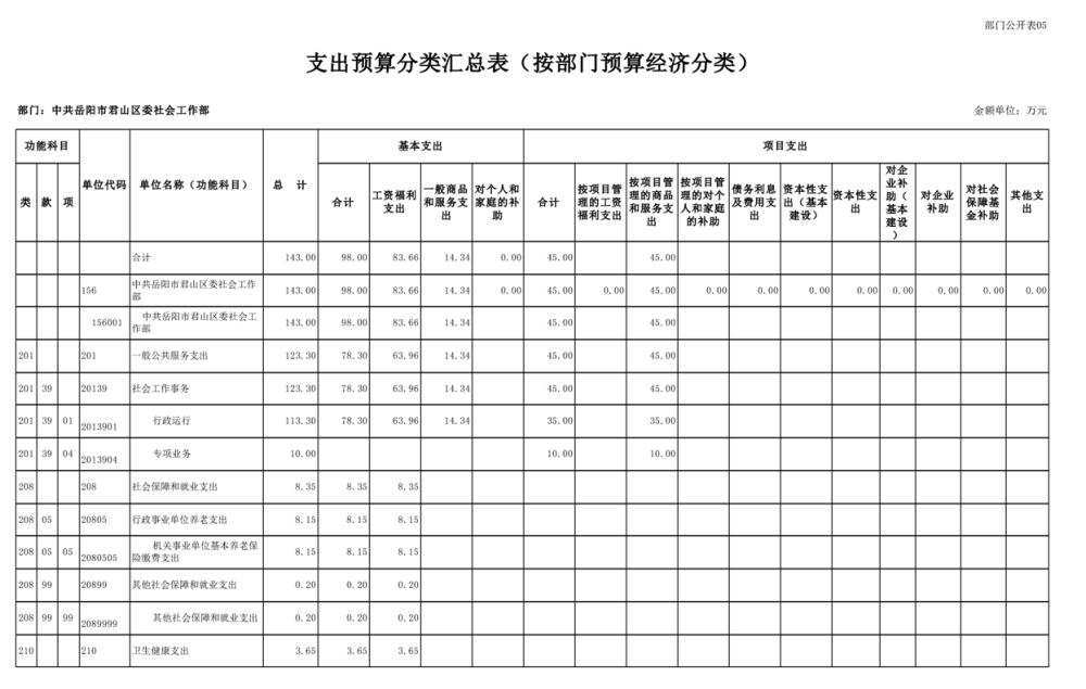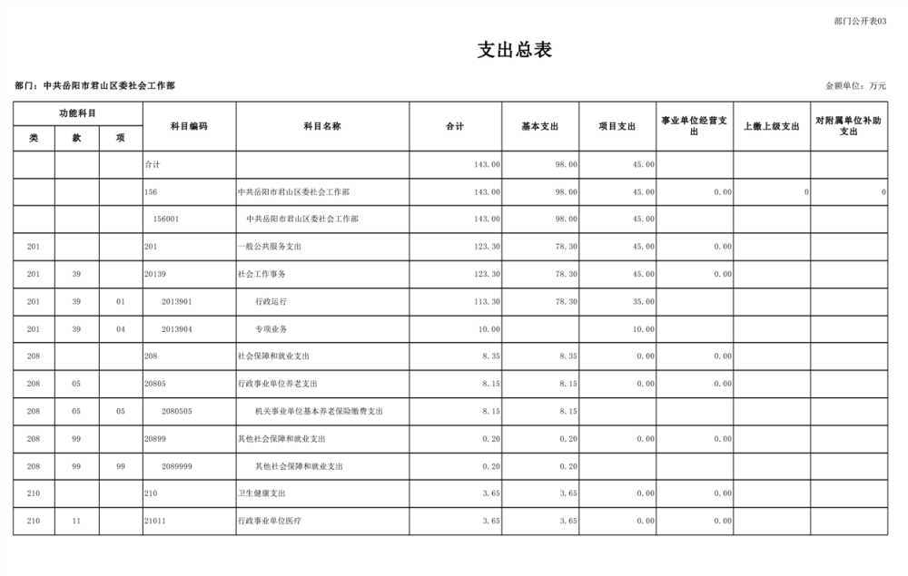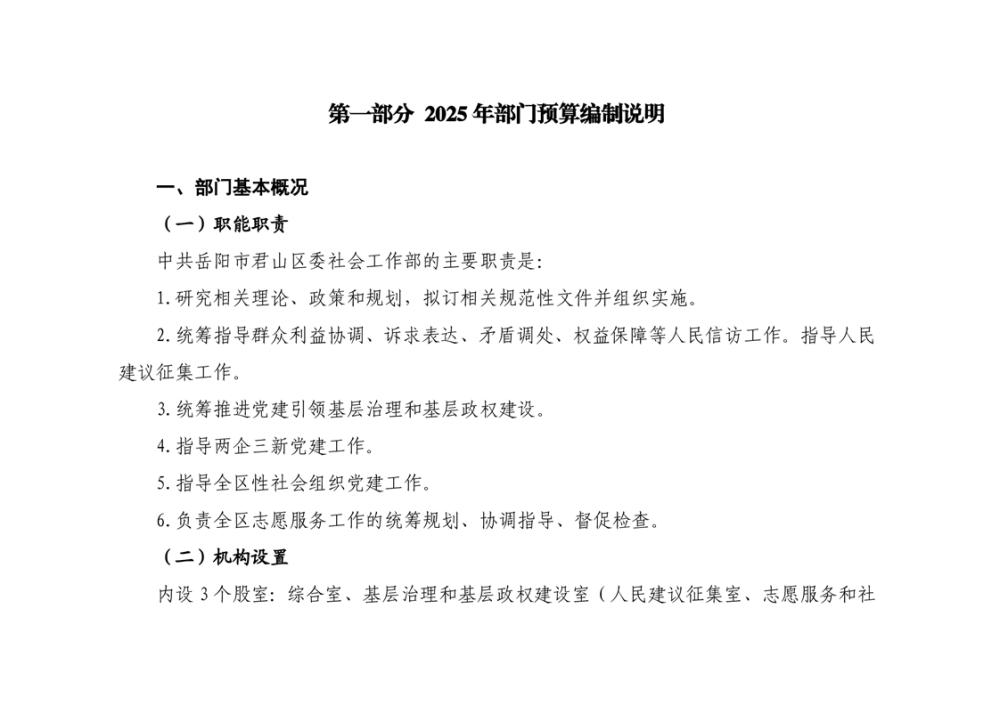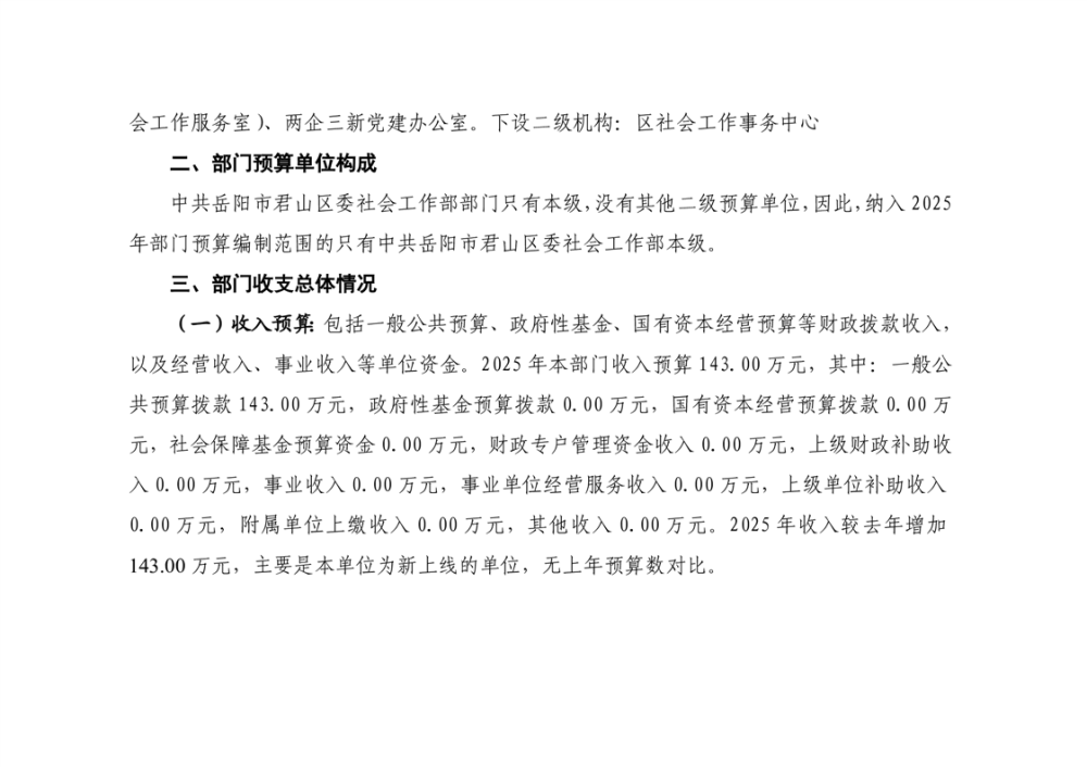 2025年中共岳阳市君山区委社会工作部部门预算公开