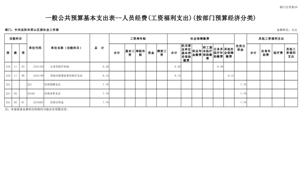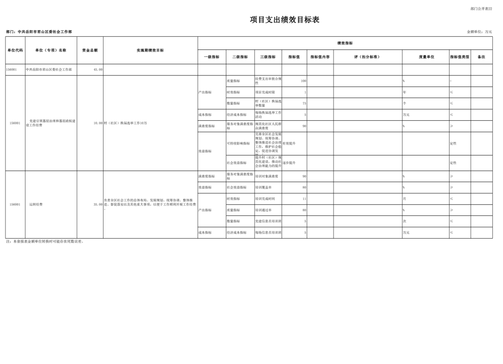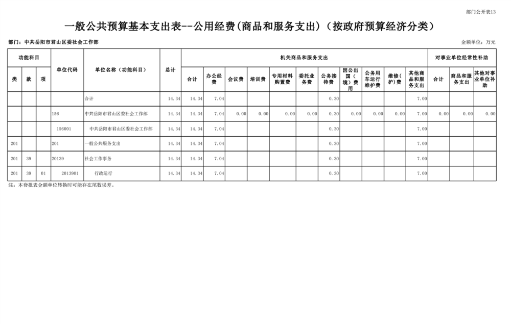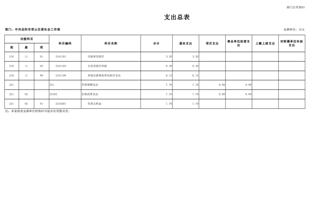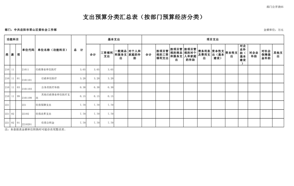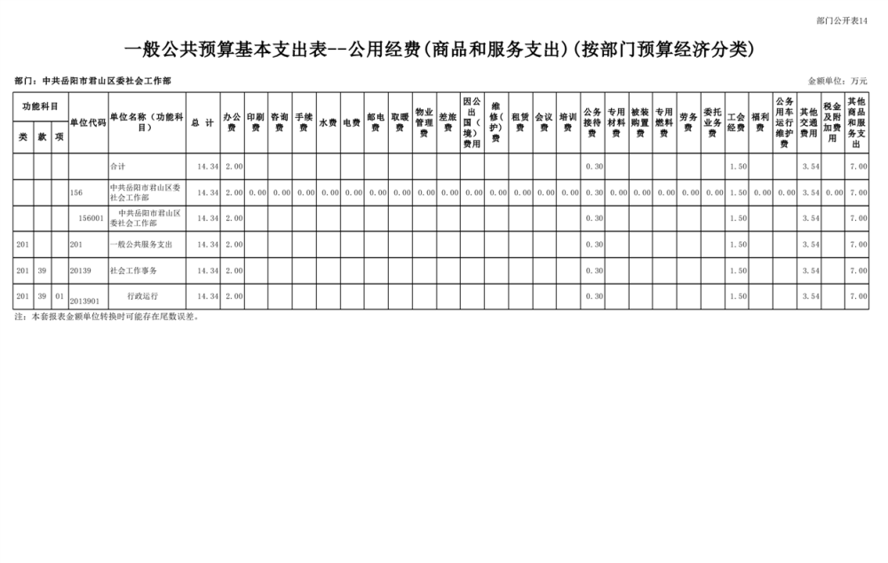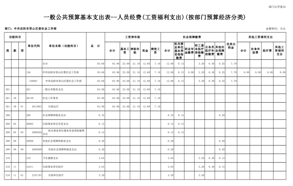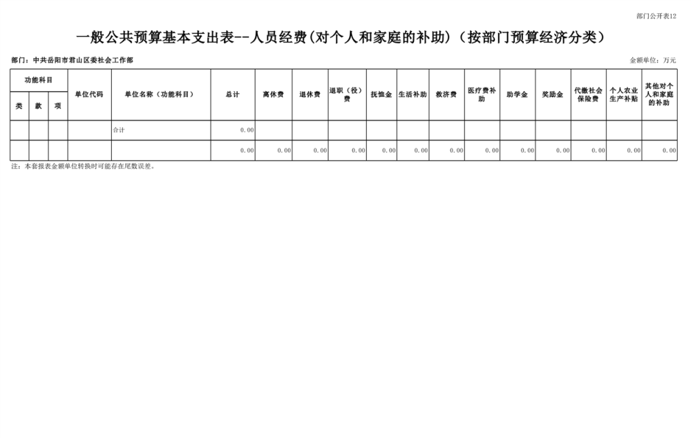 2025年中共岳阳市君山区委社会工作部部门预算公开