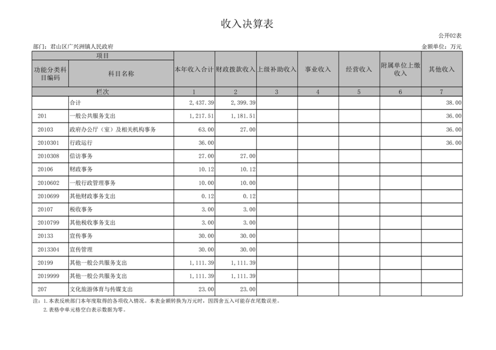 2023年度君山区广兴洲镇人民政府部门决算公开
