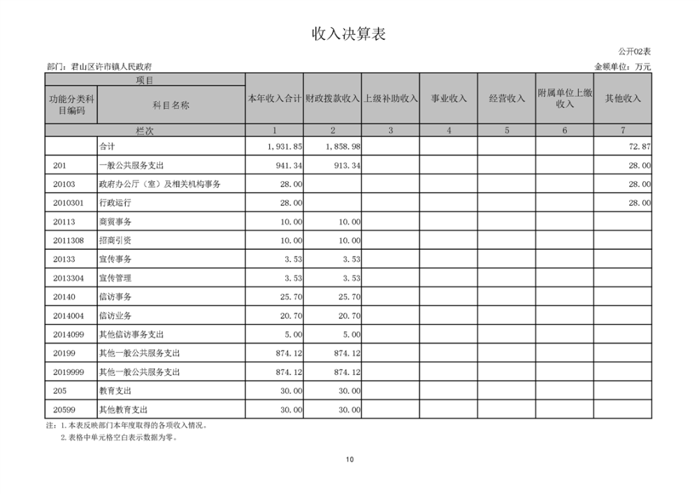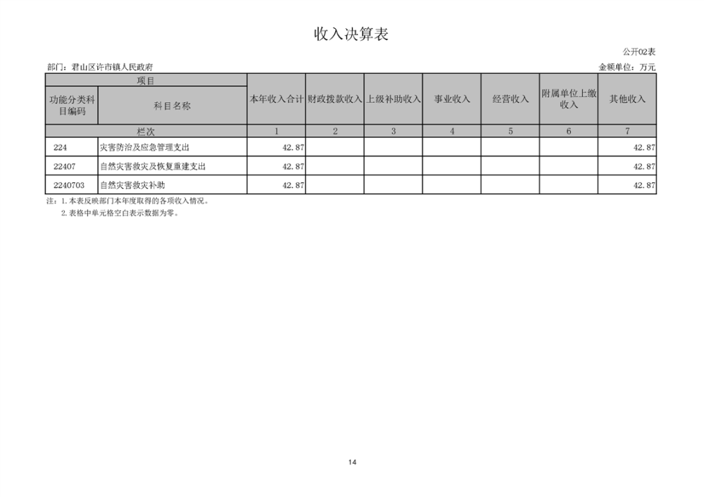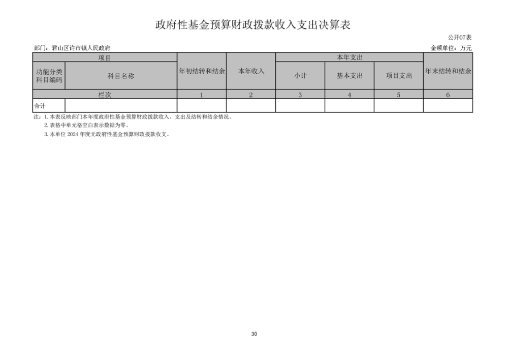 2024年度君山区许市镇人民政府部门决算公开