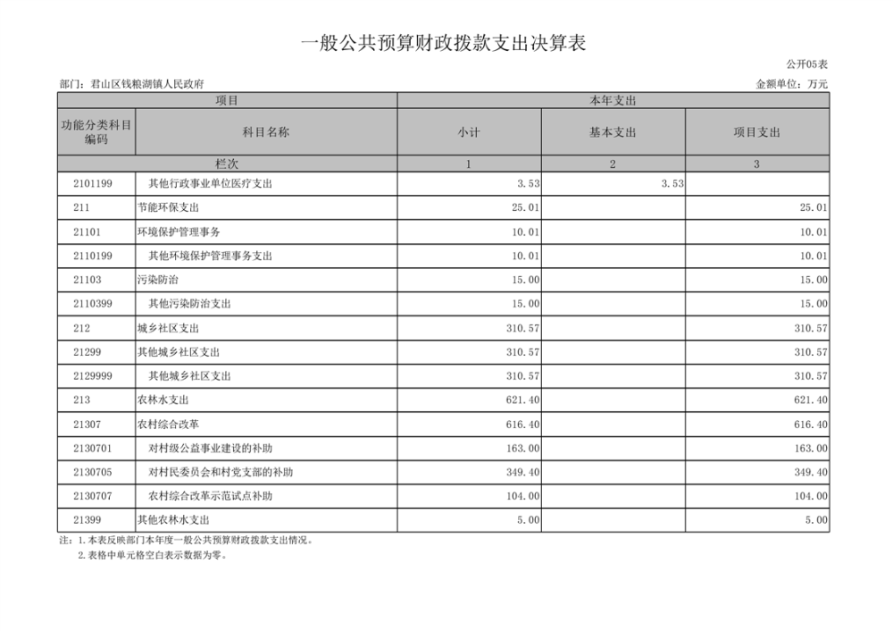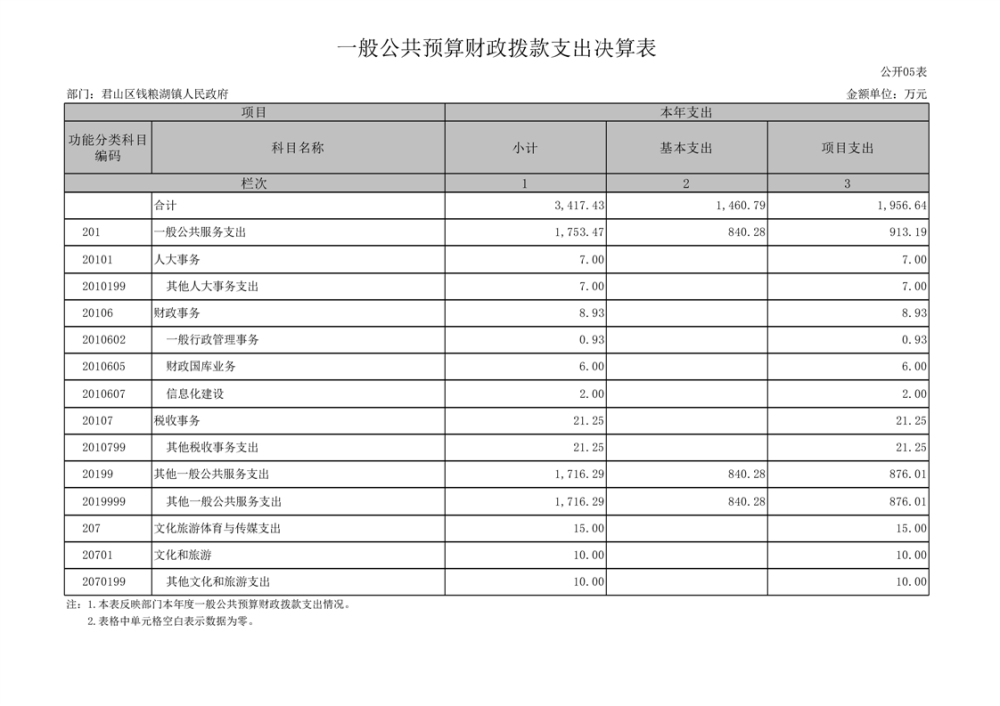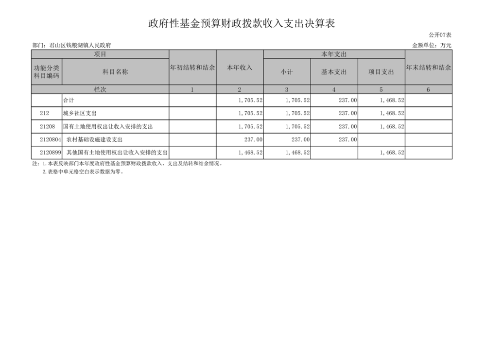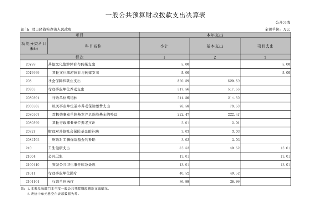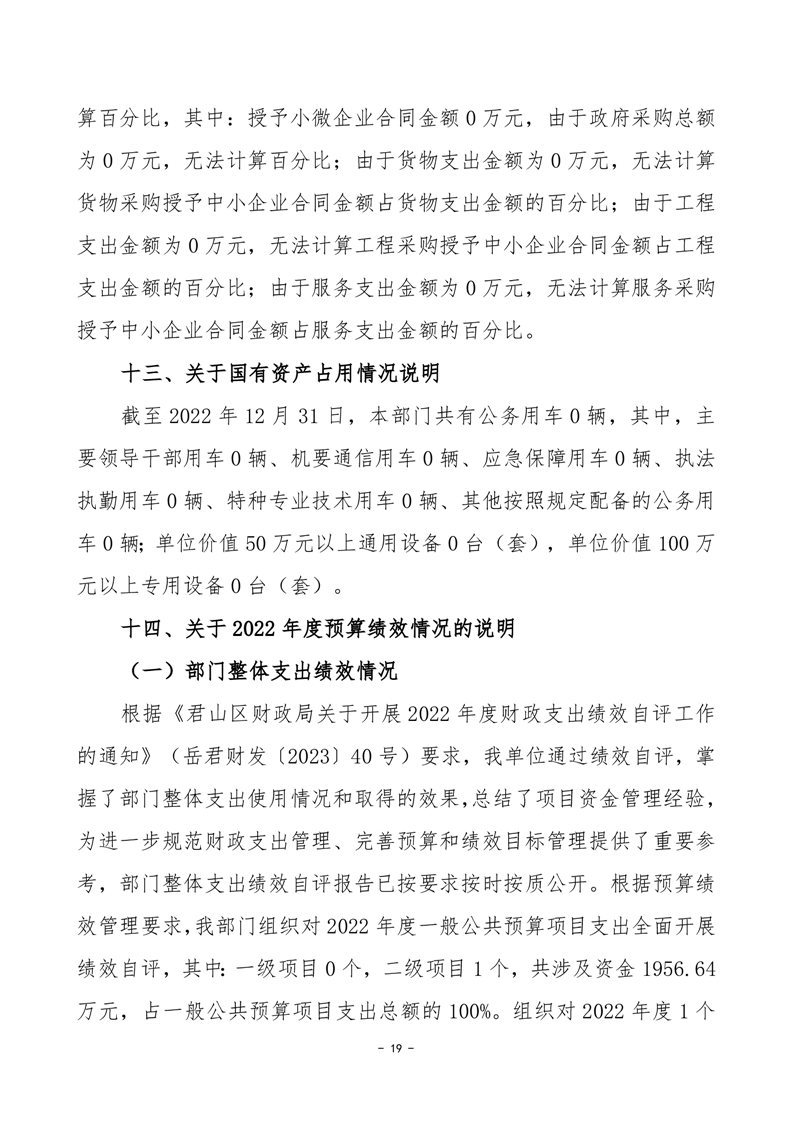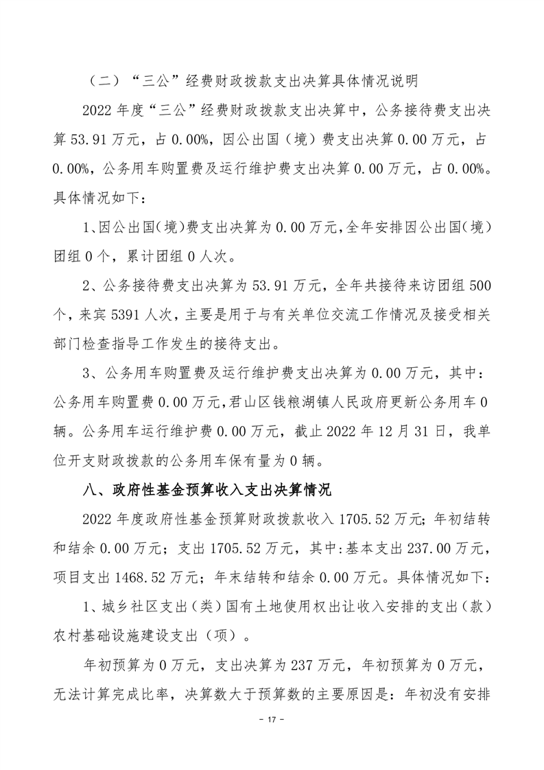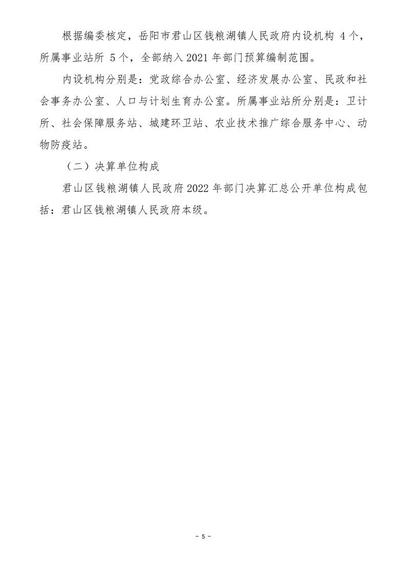2022年度岳阳市君山区钱粮湖镇人民政府部门决算公开说明