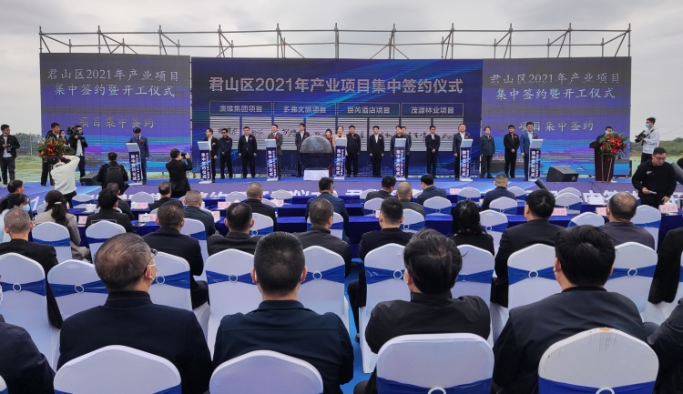 10月13日,岳阳市君山区2021年产业项目集中签约暨开工仪式举行,8个重大项目集中签约开工,总投资额达135亿元。
