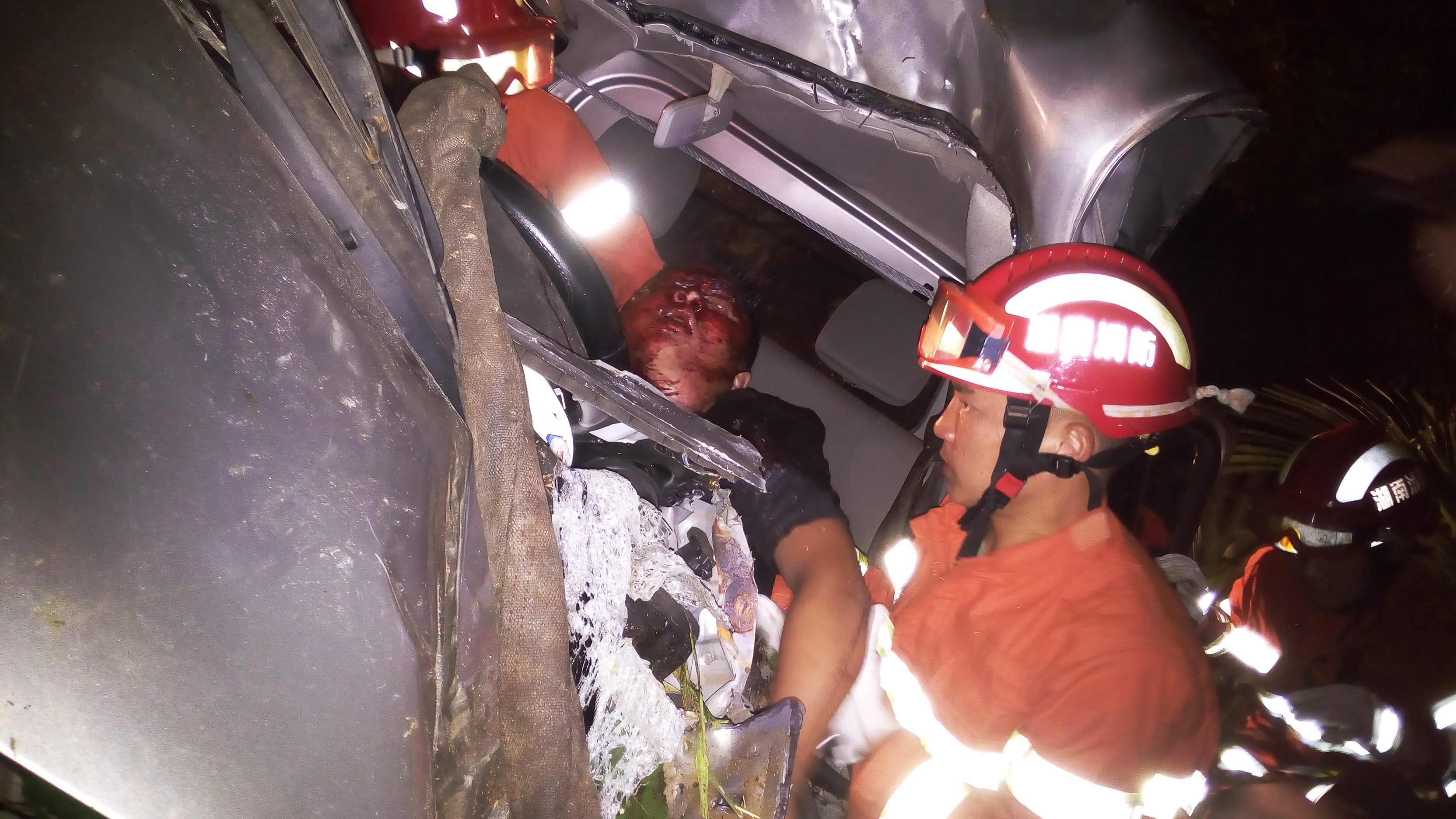 7月11日凌晨2点55分,君山消防大队接到报警:位于五星加油站附近有一辆小货车发生侧翻,司机被困,急需救援。