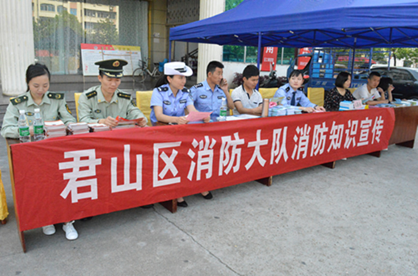 为了提高群众应对突发事件能力,进一步普及应急知识,提高群众紧急避险和自救互救能力,区政府应急办联合区消防大队、公安、民政、环保、药监、安监等多个部门于5月12日上午在君山宾馆门口设立集中宣传点,吹响了“5.12防灾减灾日”应急知识宣传活动号角。