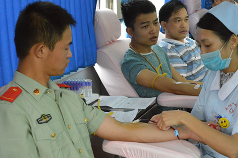 在献血现场,官兵们个个精神饱满、热情高涨,积极配合医护人员的要求,在有条不紊地完成身体检查、血型化验、填写献血登记表等程序后,纷纷挽起袖子,伸出胳膊,献出了自己的热血。此次献血活动全队官兵累计献血量达3000毫升。