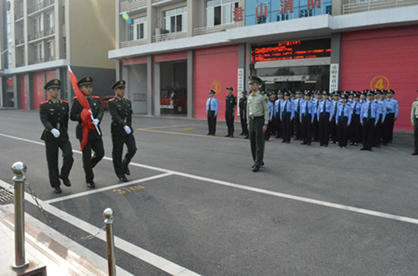 为庆祝伟大祖国67周年华诞,10月1日,君山消防大队联合区公安分局隆重举行了升国旗仪式。区公安分局在家党委委员,全体民警、辅警、交警大队民警、武警官兵及消防大队全体官兵参加升旗仪式。