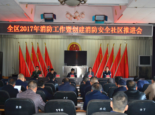 会上,区消防大队大队长李四海通报了2016年全区火灾情况;区公安分局副局长龙颖超作了全区消防工作报告;区综治办副主任张胜良就创建消防安全社区工作做了安排部署。