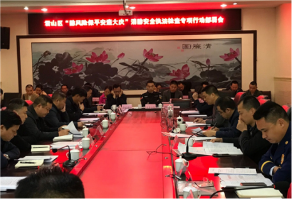 4月29日,君山区召开“防风险保平安迎大庆”消防安全执法检查专项行动部署会,区委常委、常务副区长罗遥、区人民政府副区长吴国良、区公安分局副局长龙颖超出席会议,区教育局、区民政局等消安委成员单位和各镇(街道)、场负责人参加会议。
