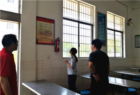 大队检查人员首先向学校负责人了解目前学校的师生人数、占地面积等基本情况,并检查了学校消防安全管理制度是否落实;教学楼、宿舍、食堂等重点部位消防设施是否配备和完好;电器线路敷设是否规范;安全出口、疏散通道、楼梯间设置是否规范并保持畅通;应急照明、室内消火栓等消防设施是否完好有效等进行逐项检查。