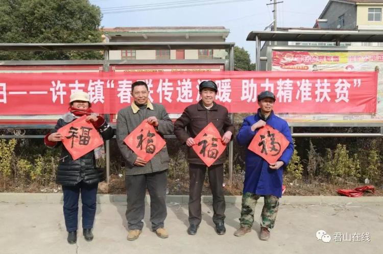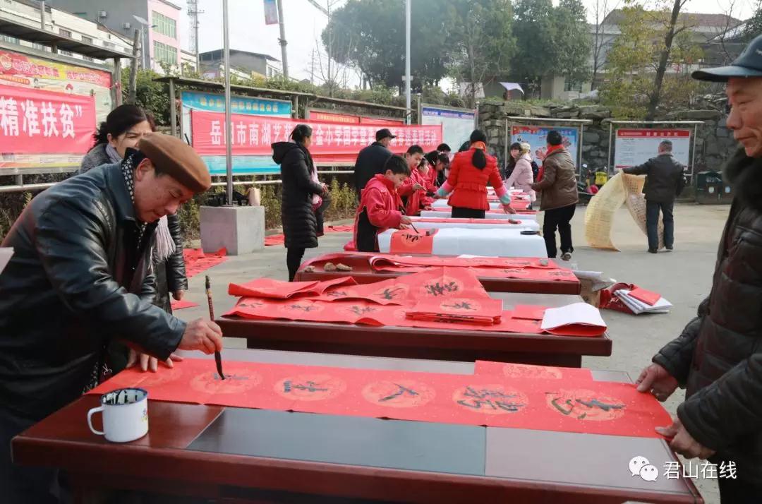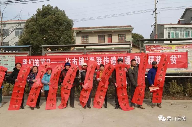为了深入学习贯彻落实党的十九大精神,凝聚打赢脱贫攻坚战强大合力,许市镇联合镇诗联书法学会、岳阳市南湖艺苑、黄金小学开展了“春联传递温暖,助力精准扶贫”现场写春联活动。
