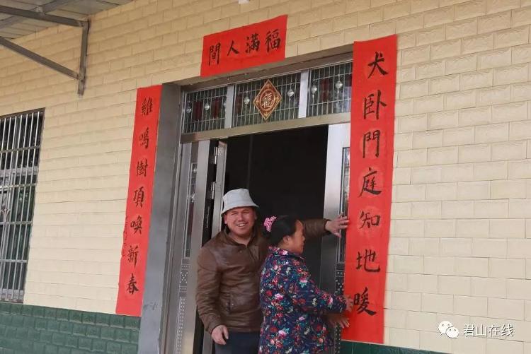 “人顺家顺事事顺,业兴时兴年年兴”,2月2日,君山区许市镇金盆村贫困户卢进旺将红红的春联贴在了新房的大门上,高兴地说党委政府真是想的周到,不仅帮忙发展产业脱贫,还为我们送来喜庆春联。