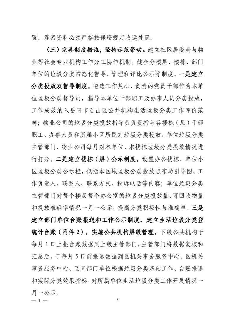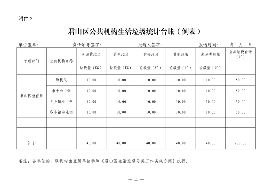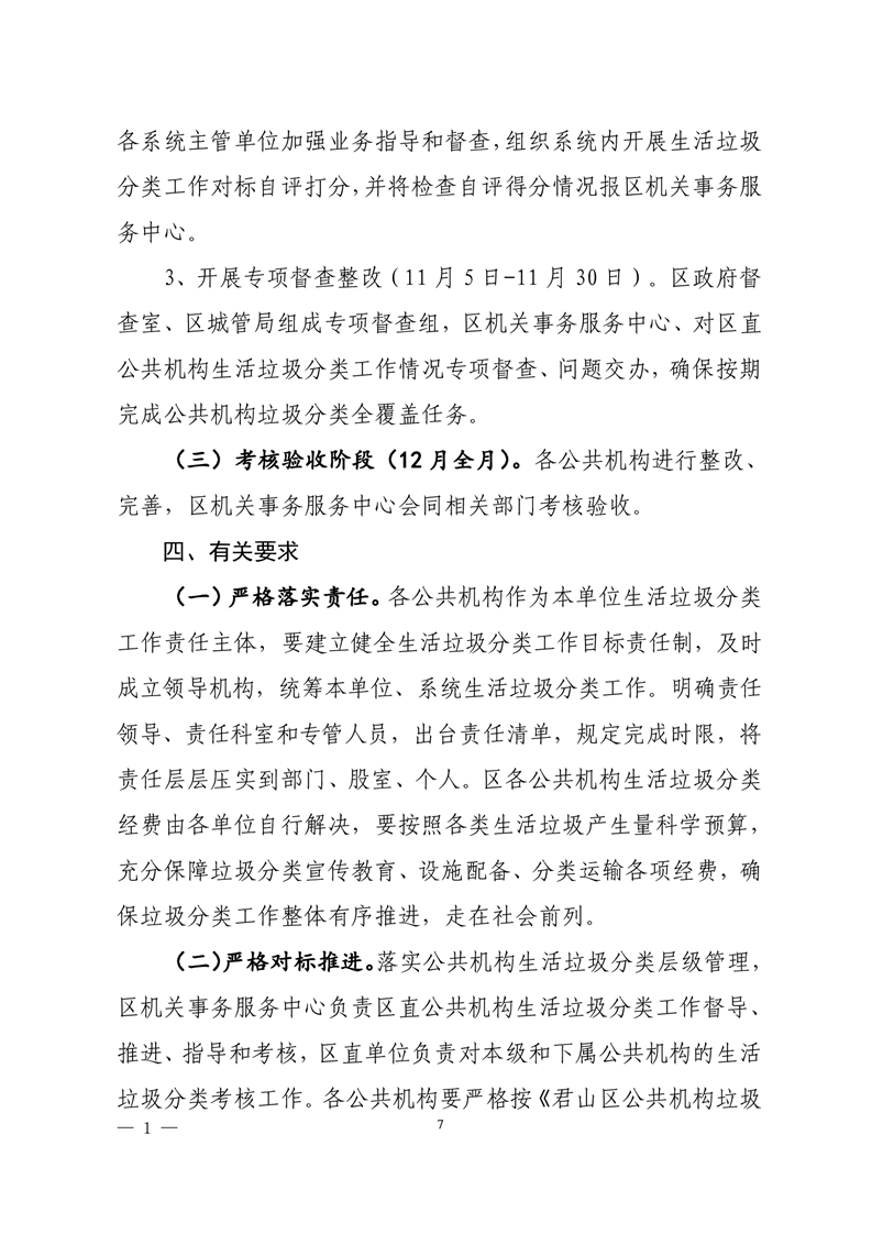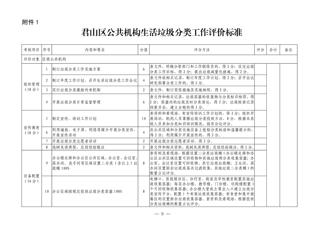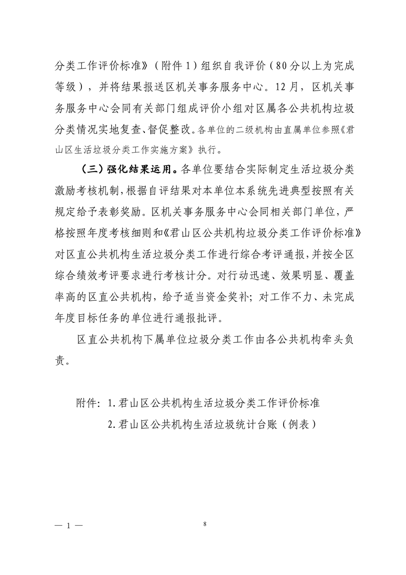 君山区2020年区直公共机构生活垃圾分类工作实施方案