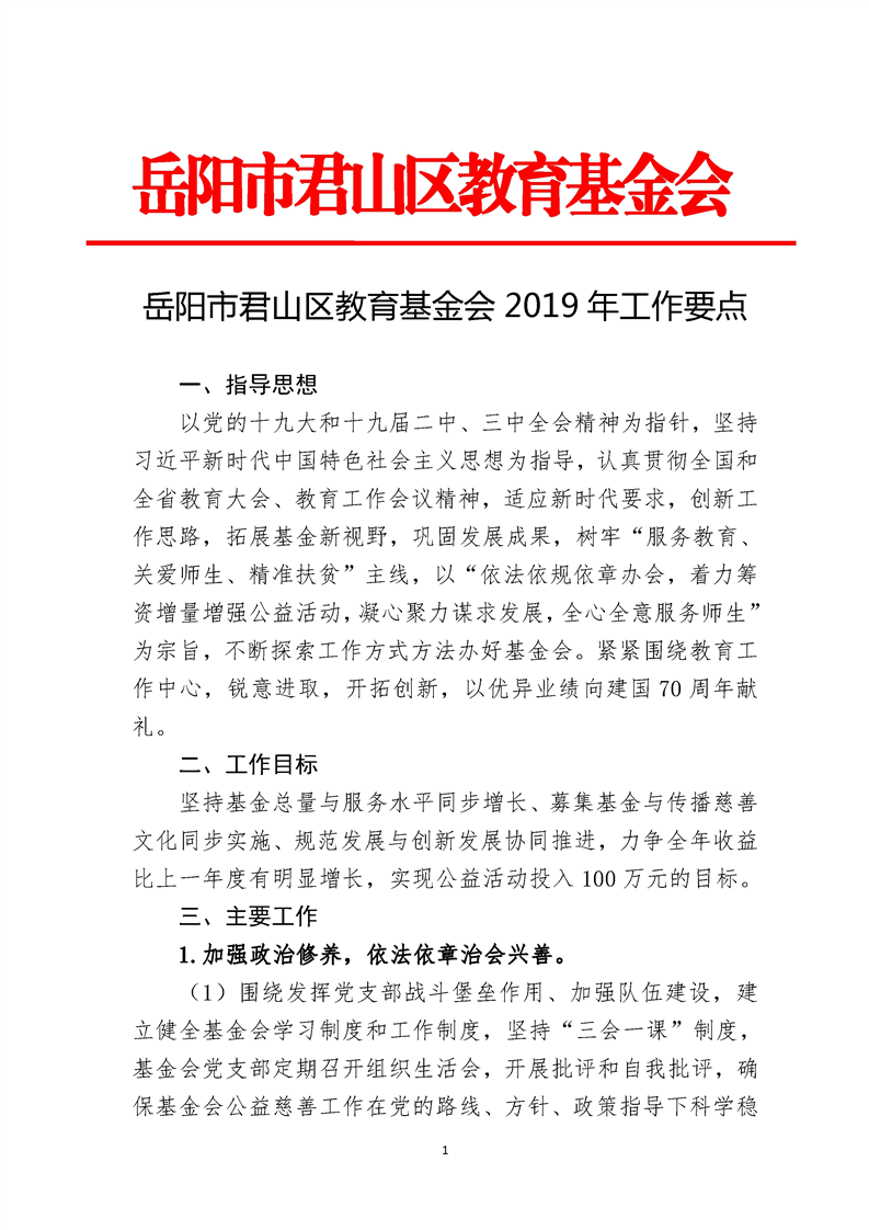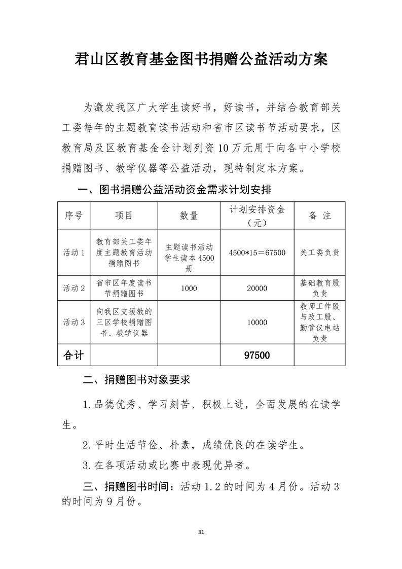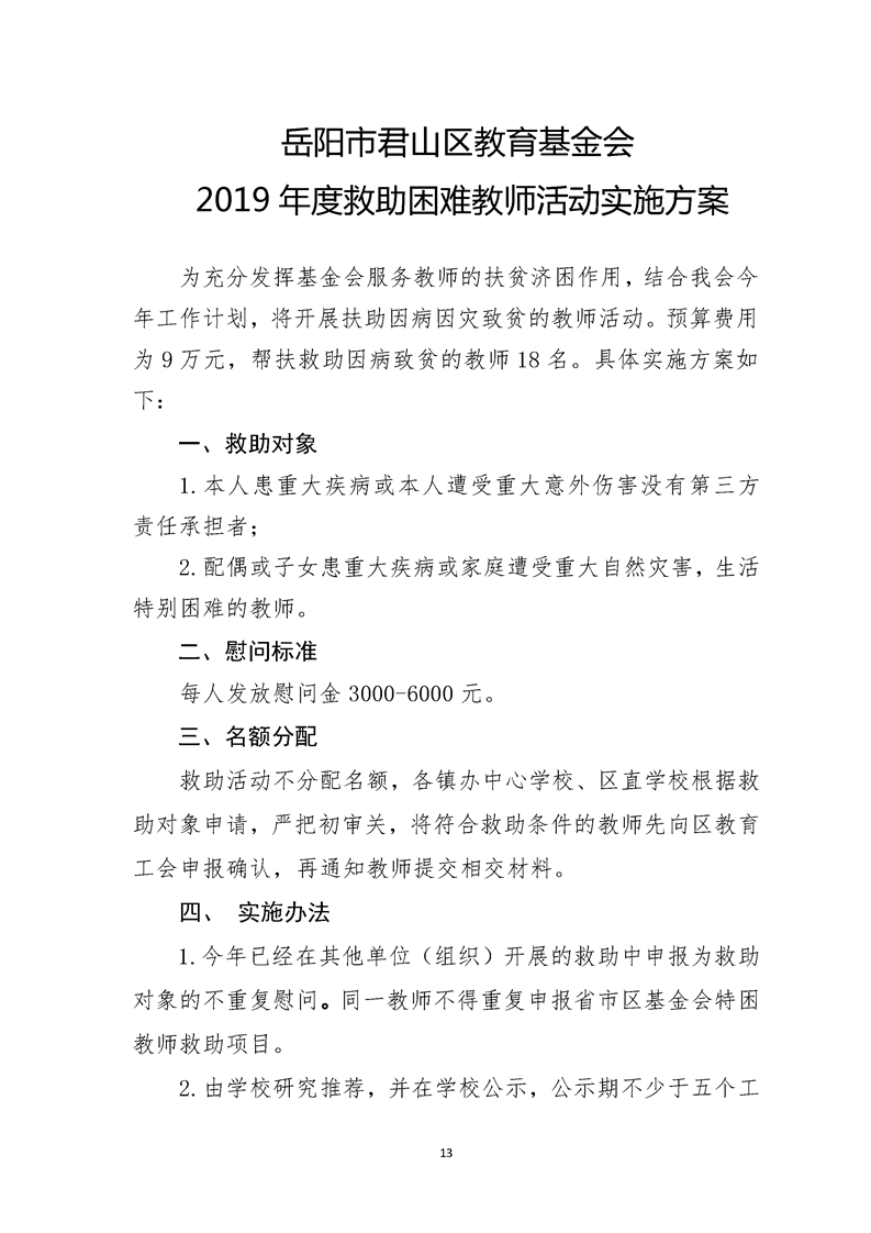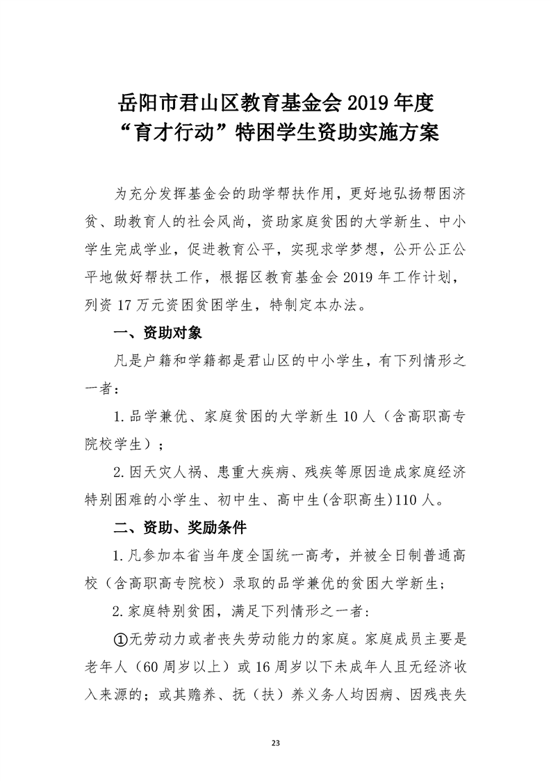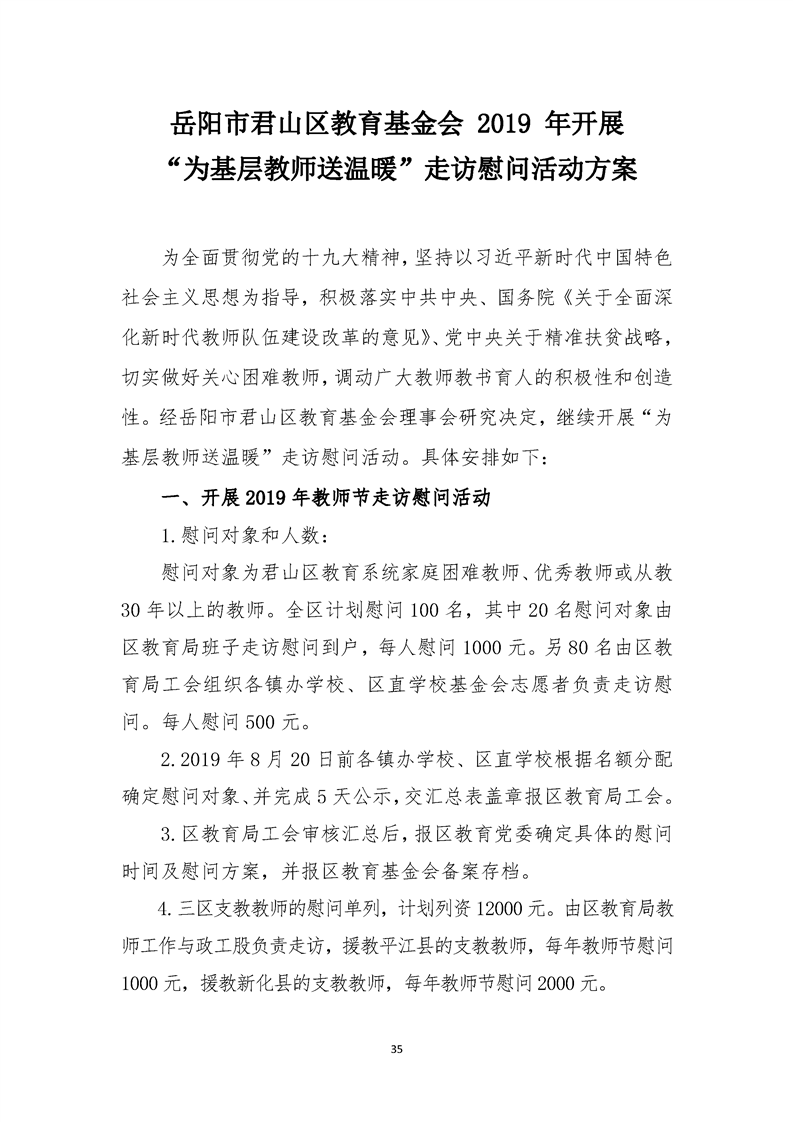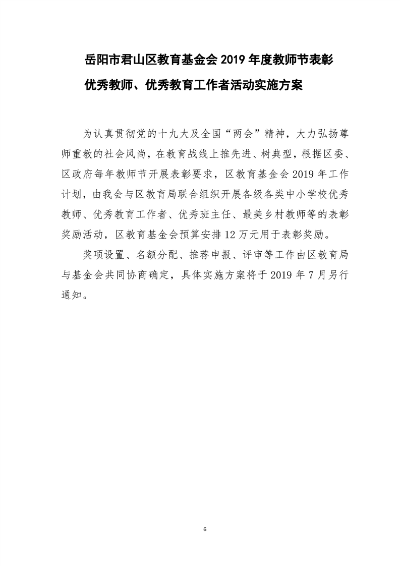 岳阳市君山区教育基金会2019年公益活动实施方案