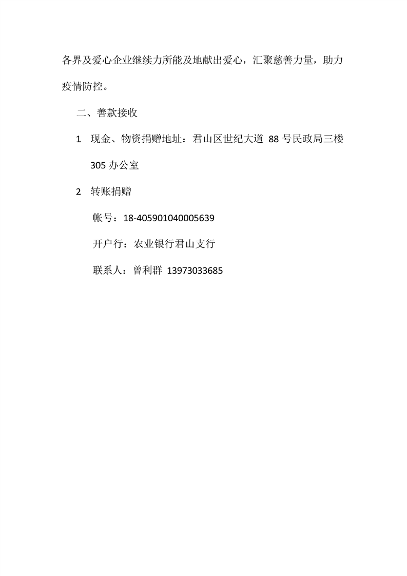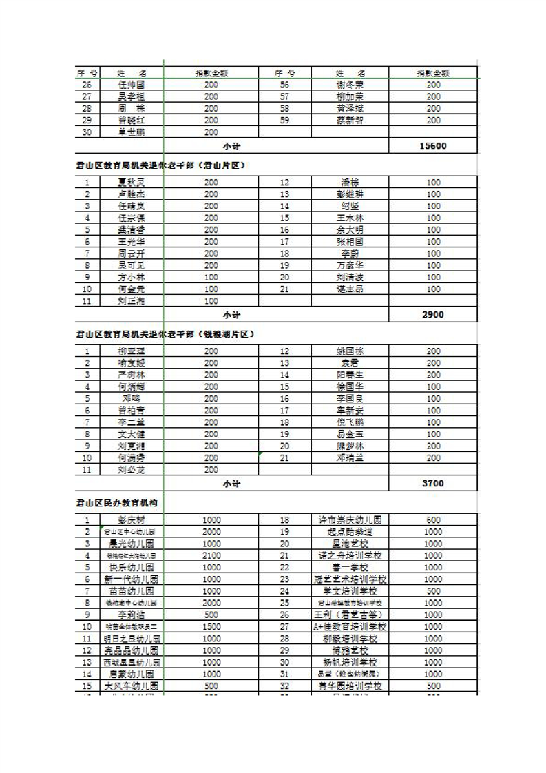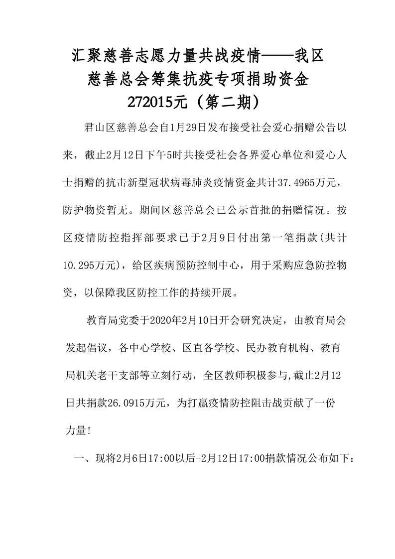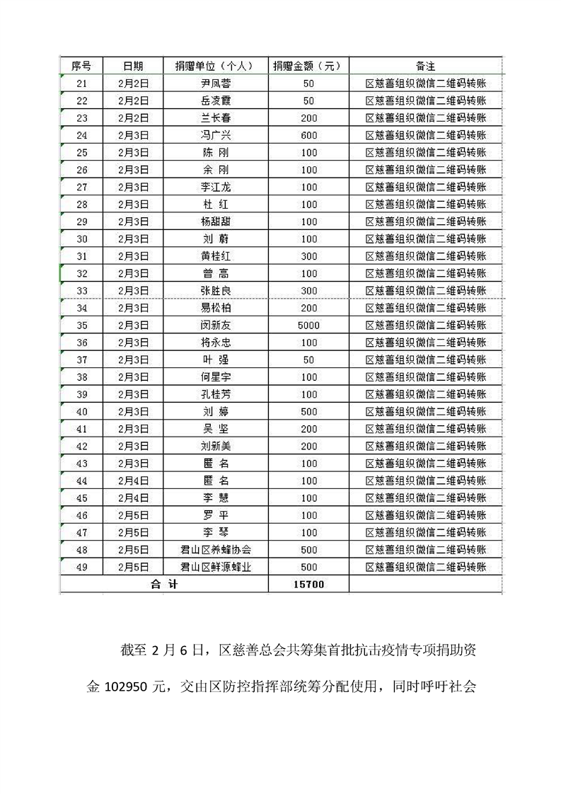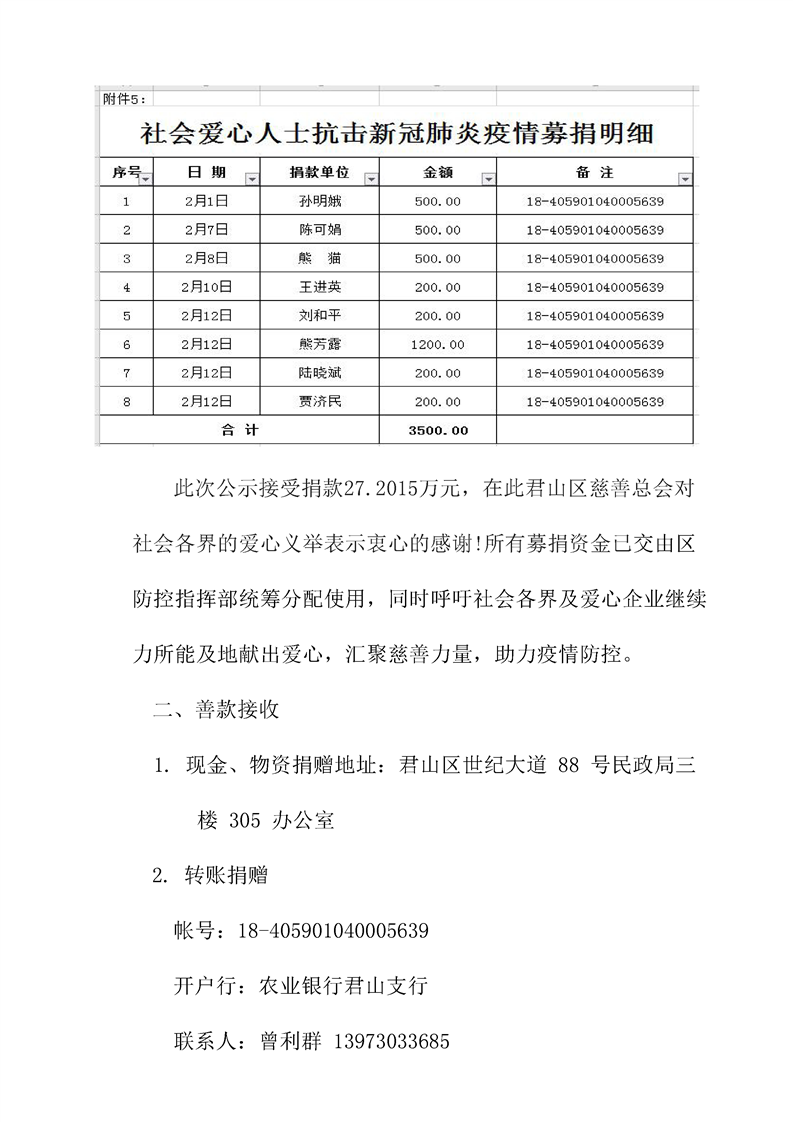 君山区慈善总会接收社会捐赠情况公示(第二期)