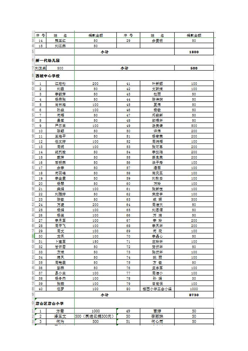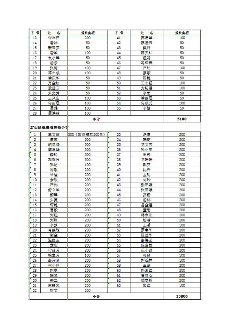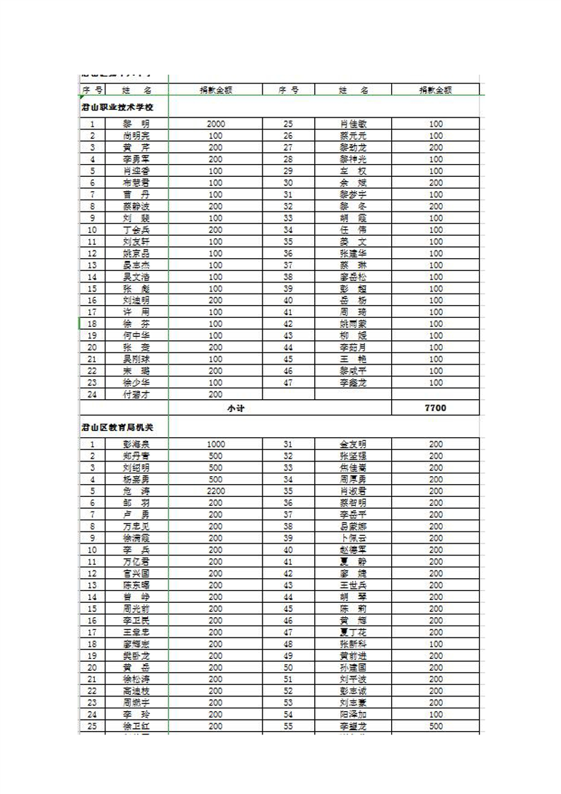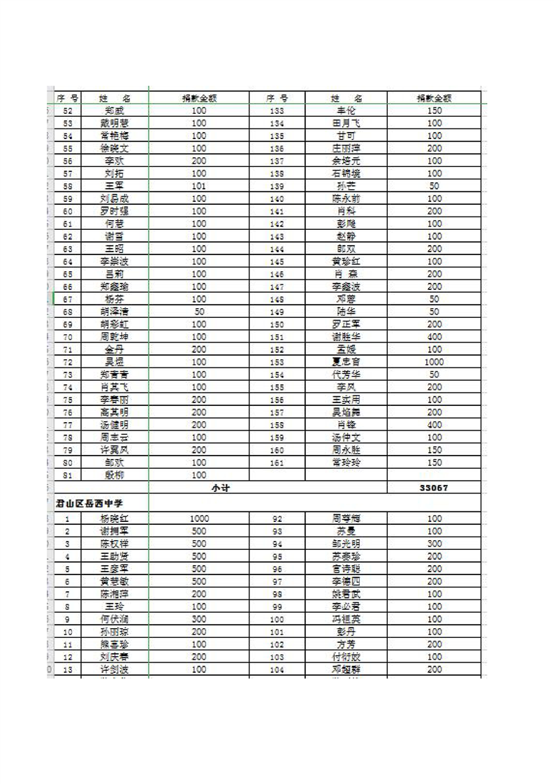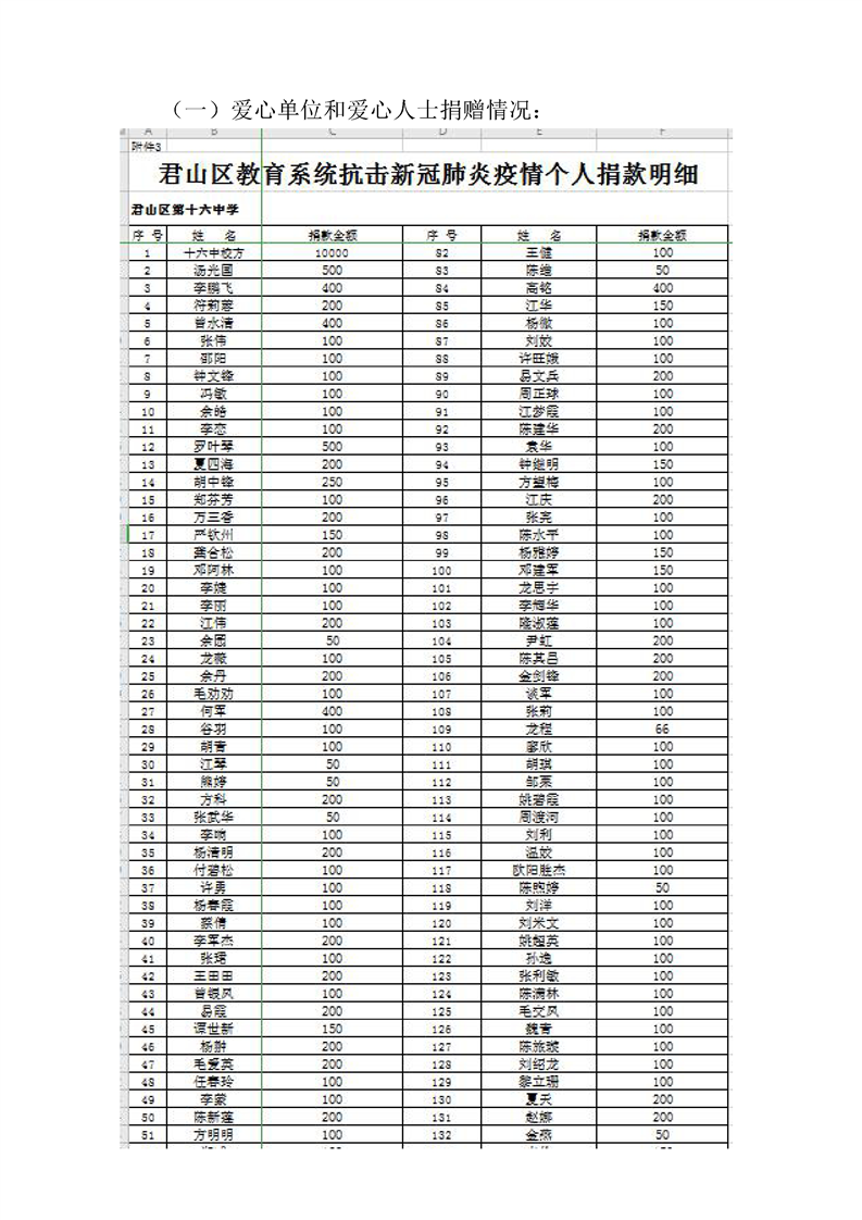 君山区慈善总会接收社会捐赠情况公示(第二期)