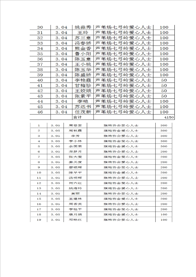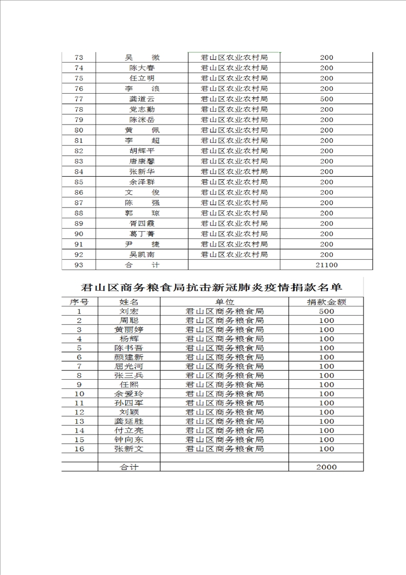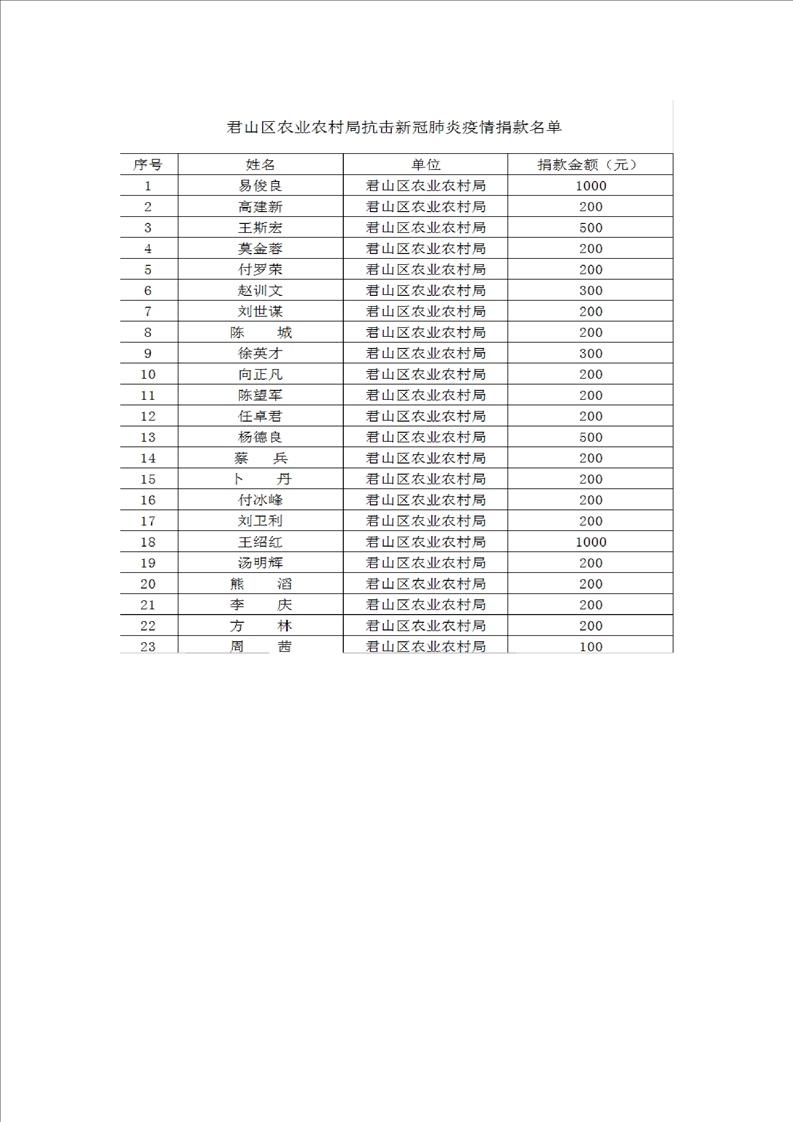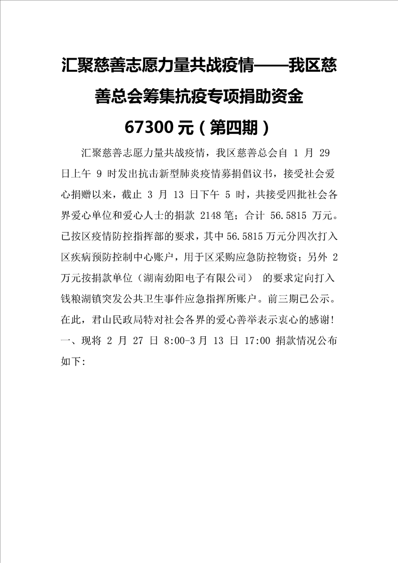 君山区慈善总会接收社会捐赠情况公示(第四期)