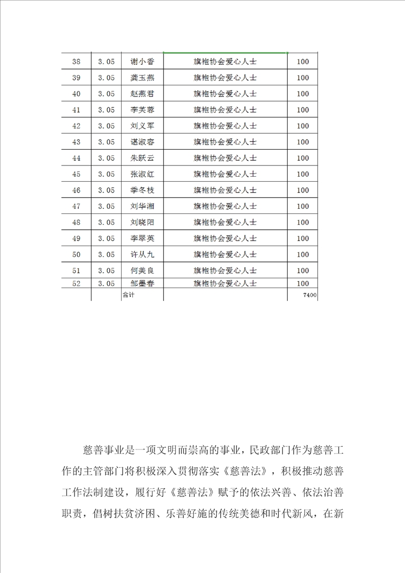 慈善总会接受捐赠公示