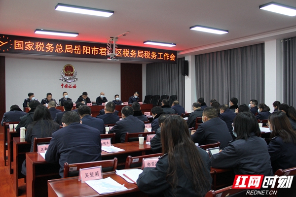 红网时刻岳阳2月17日讯(通讯员 唐新辉)2月16日,国家税务总局岳阳市君山区税务局召开2022年全区税务工作会议。区局党委书记、局长谌劲松作工作报告;君山区委常委、常务副区长沈澍;市局党委委员、总会计师何志平出席会议并讲话。