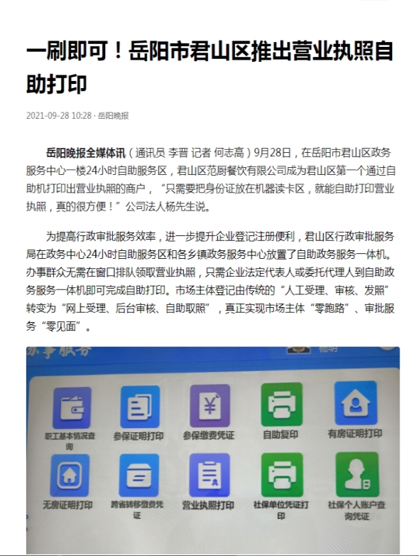一刷即可!岳阳市君山区退出营业执照自助打印
