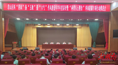 8月16日,君山区召开纠“四风”扬“五敢”提“六气”作风建设年半年度讲评暨“两带头五整治”纠风防腐专项行动推进会,区委副书记、区委统战部部长、君山产业开发区党工委第一书记(兼)田军出席并讲话,区委常委、区纪委书记、区监委主任李庆国,区委常委、区委组织部部长吴旺兴,区委常委、区人民政府常务副区长沈澍,区直及驻区各单位,各镇(街道)、场主要负责人参加。会议由区委常委、区委办主任易俊良主持。