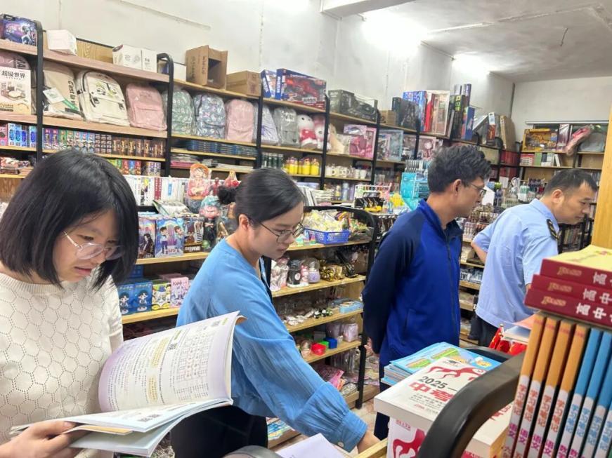 检查组聚焦文化市场重点领域和薄弱环节,针对镇中心小学、许市中学周边经营场所开展精准排查,重点查看是否存在销售含淫秽色情等危害青少年健康的非法出版物、侵权盗版教辅教材和音像制品等违规行为。同时,检查组开展了“扫黄打非”普法宣传,向经营者详细讲解非法出版物的识别方法与危害,引导其自觉抵制非法文化产品,严把进货渠道关,坚决杜绝各类有害信息传播。