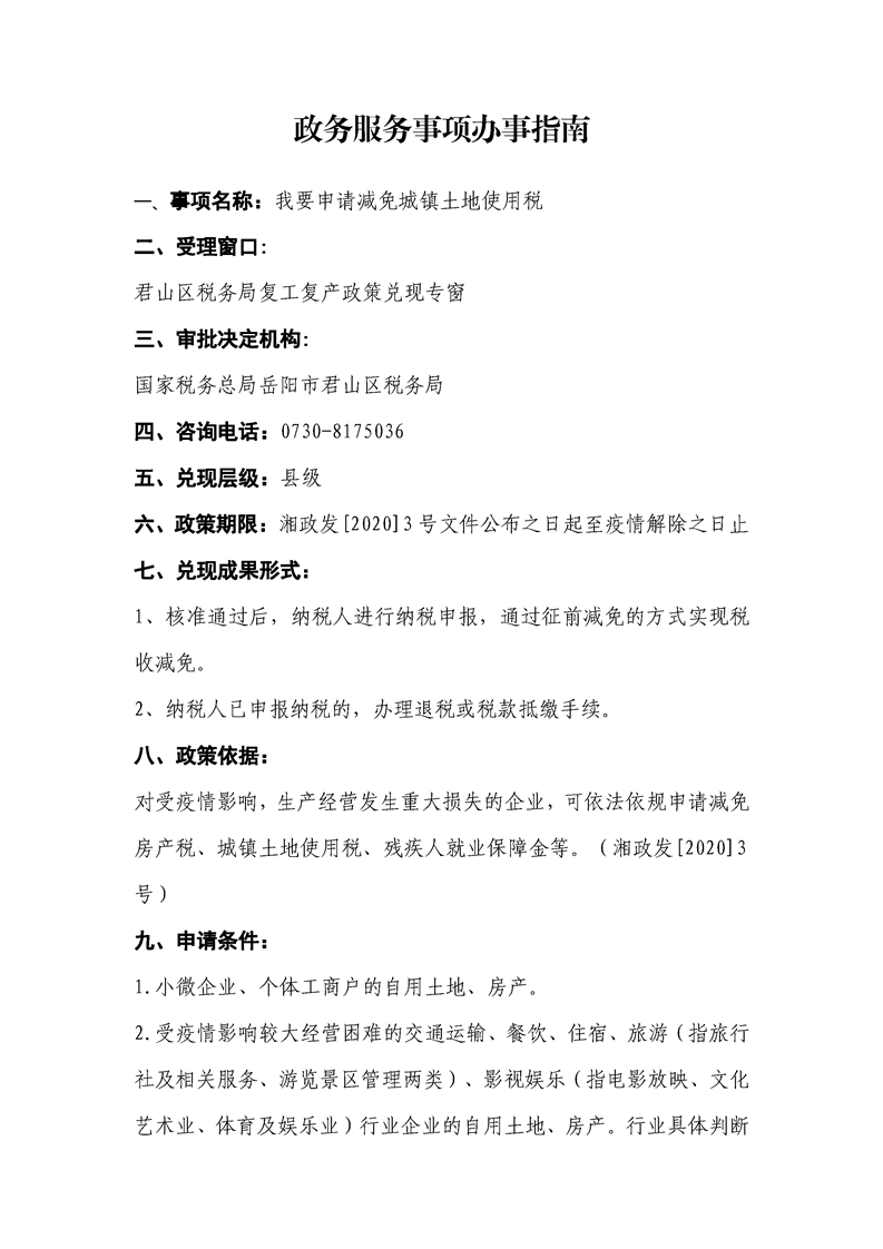 我要申请减免城镇土地使用税