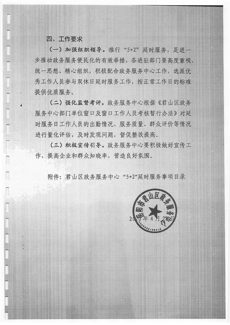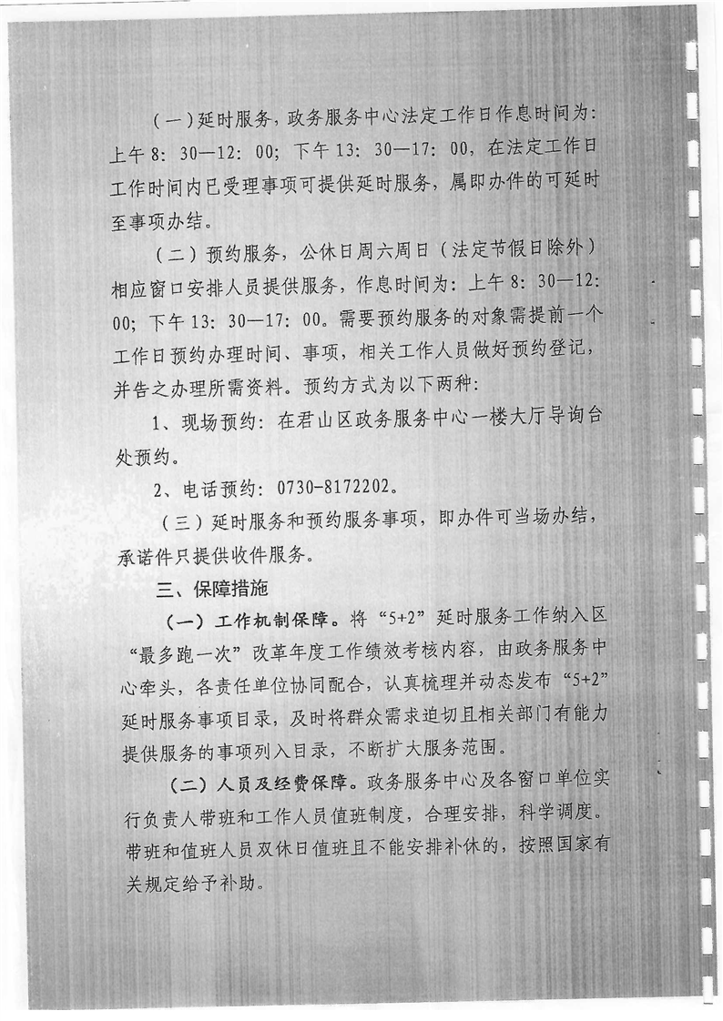 君山区政务服务中心推行“5+2”延时服务和预约服务实施方案