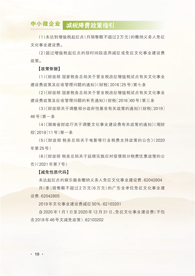 中小微企业减税降费政策指引