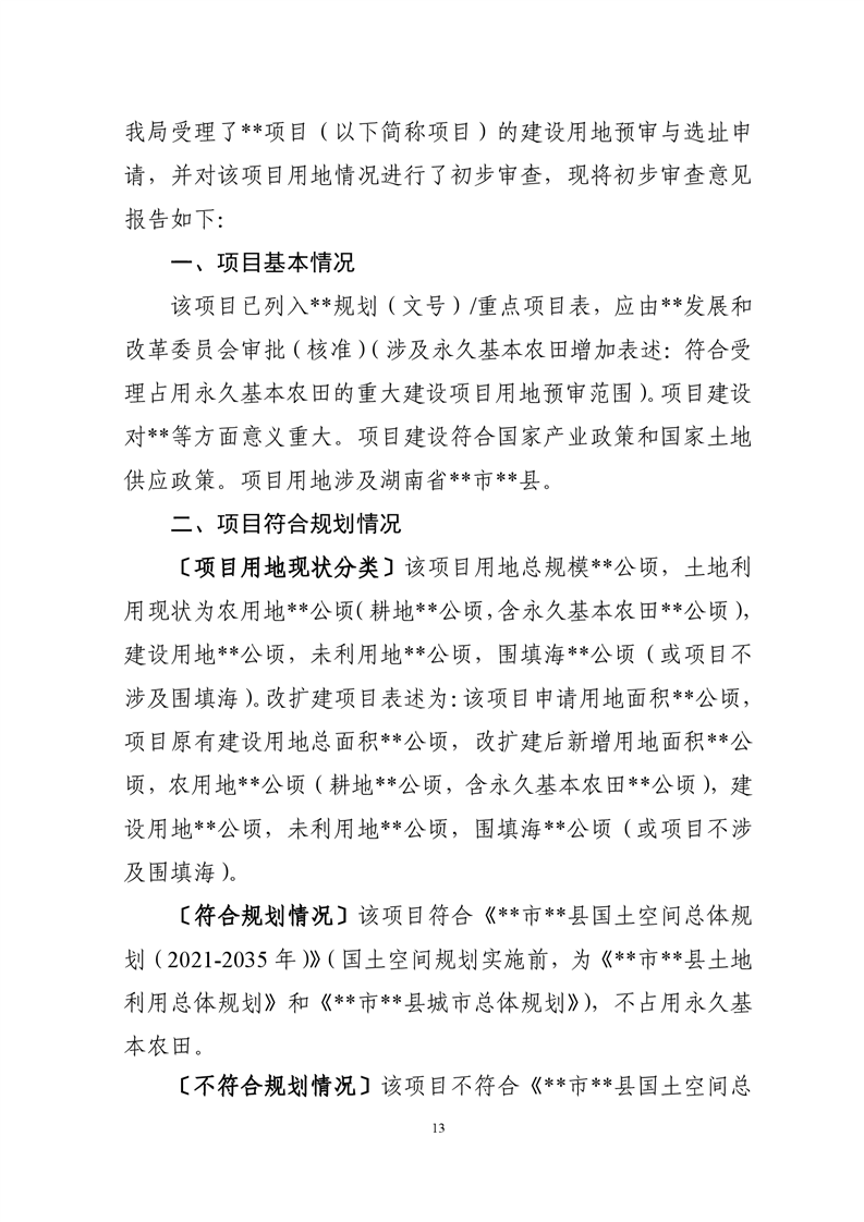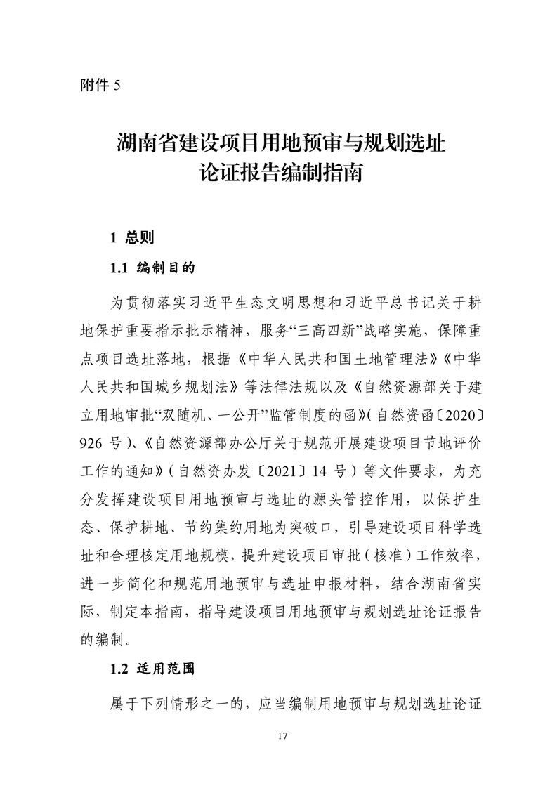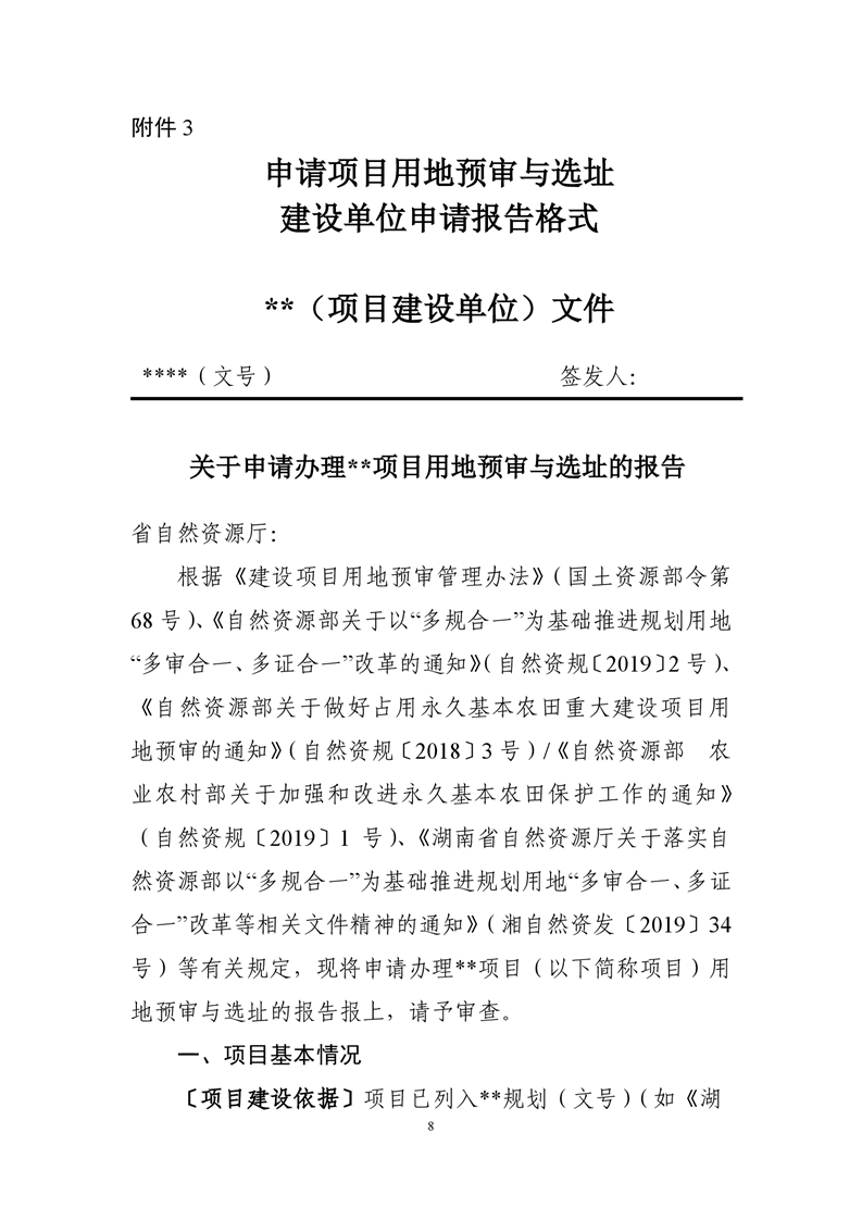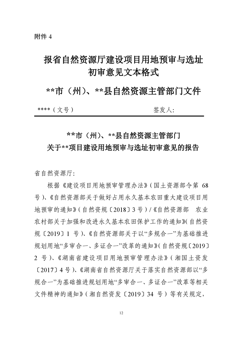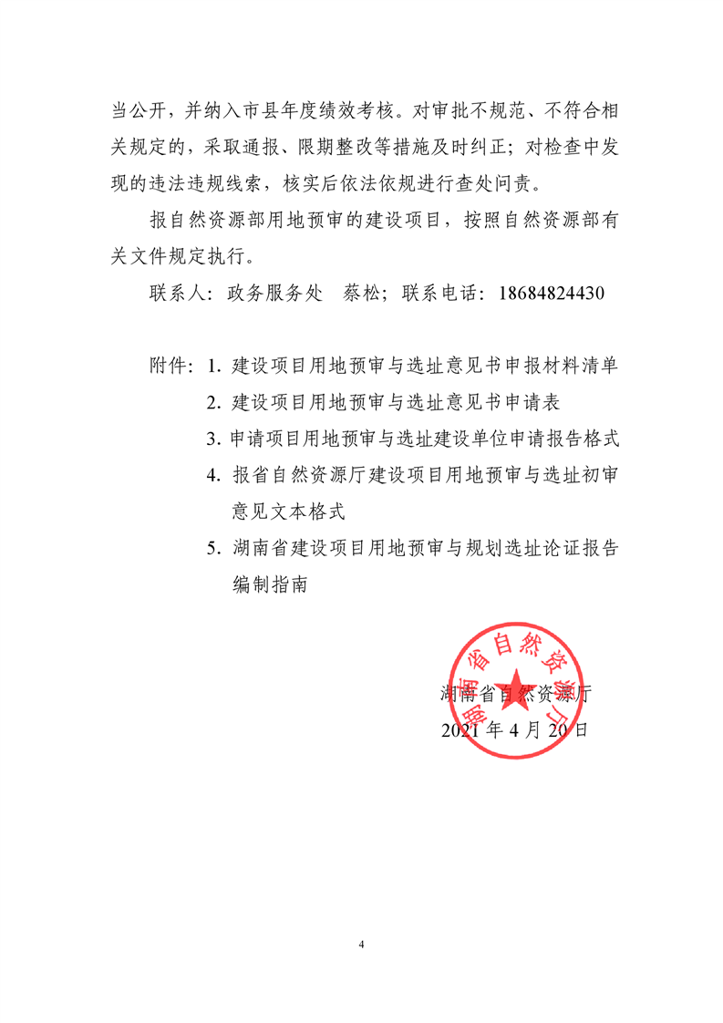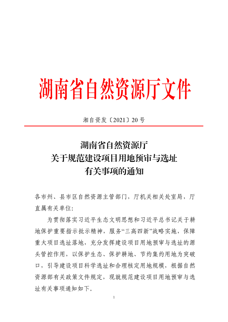 湖南省自然资源厅关于规范建设项目用地预审与选址有关事项的通知(湘自资发〔2021〕20 号)