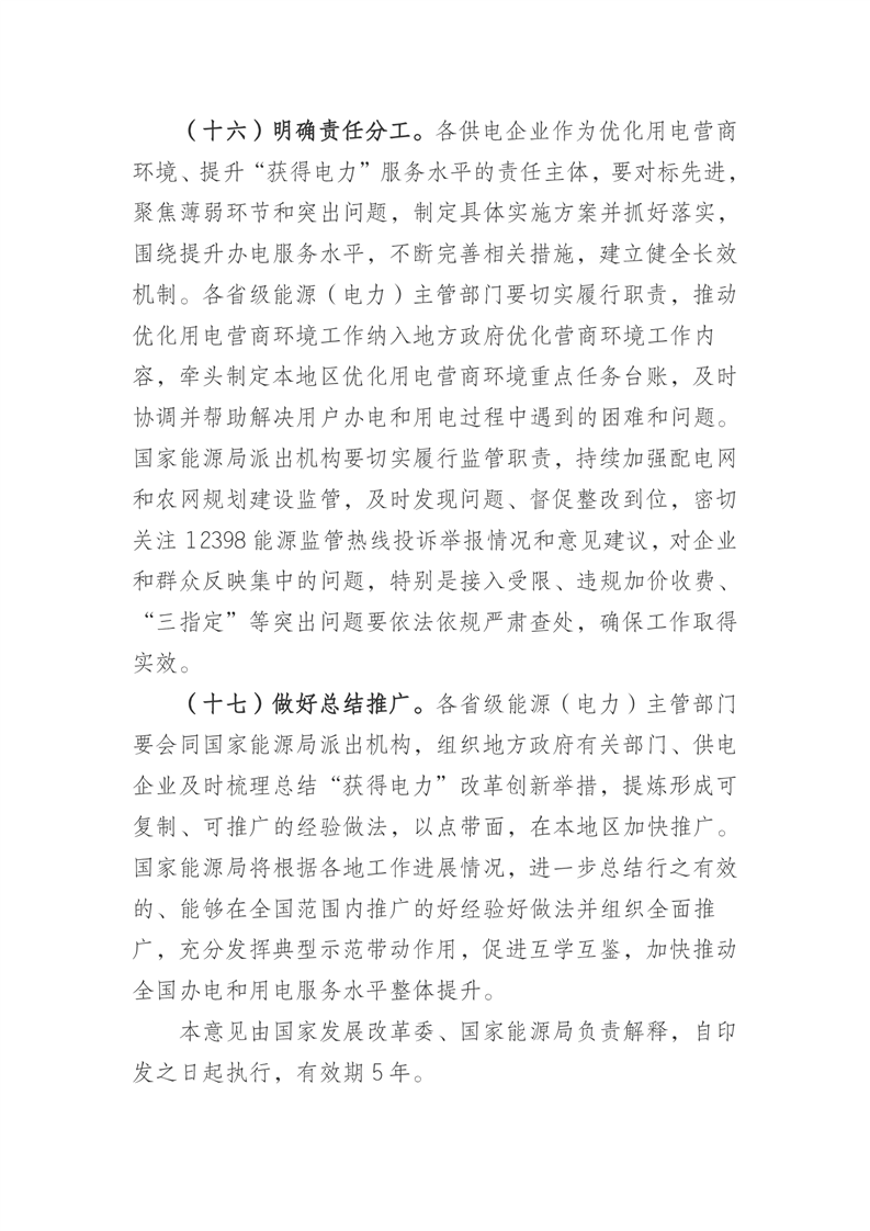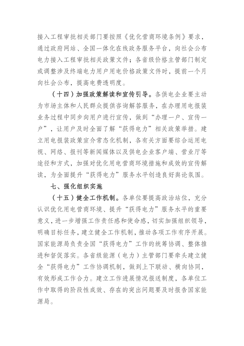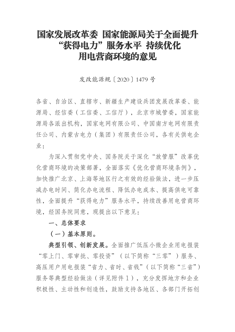 国家发展和改革委国家能源局关于全面提升“获得电力”服务水平持续优化用电营商环境的意见(发改能源规〔2020〕1479号)