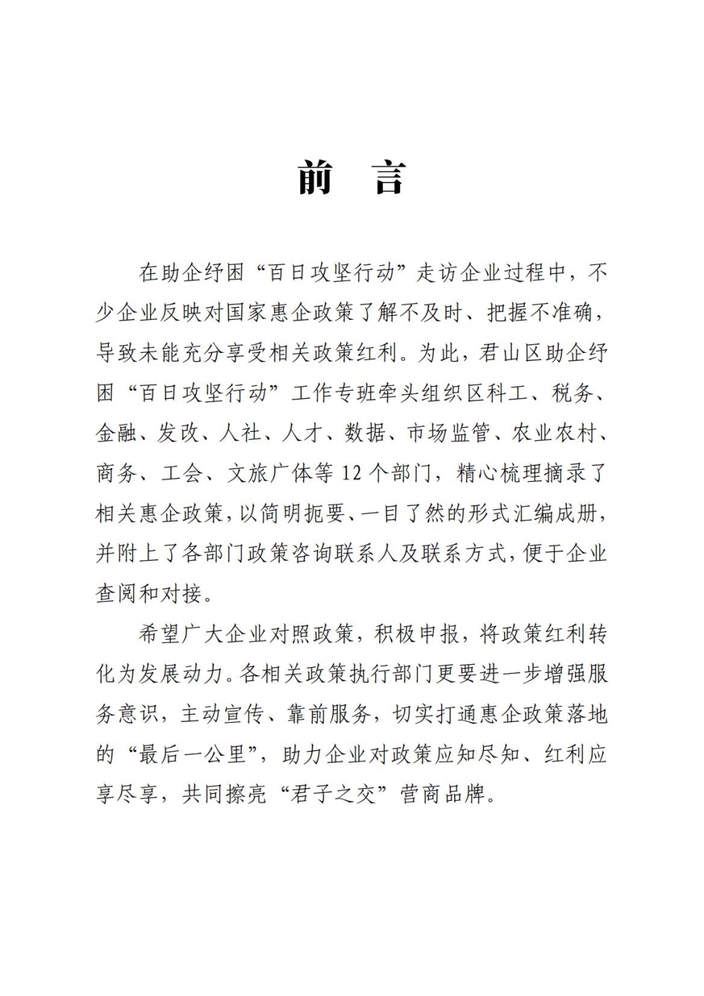 君山区助企纾困“百日攻坚行动”惠企政策摘录汇编