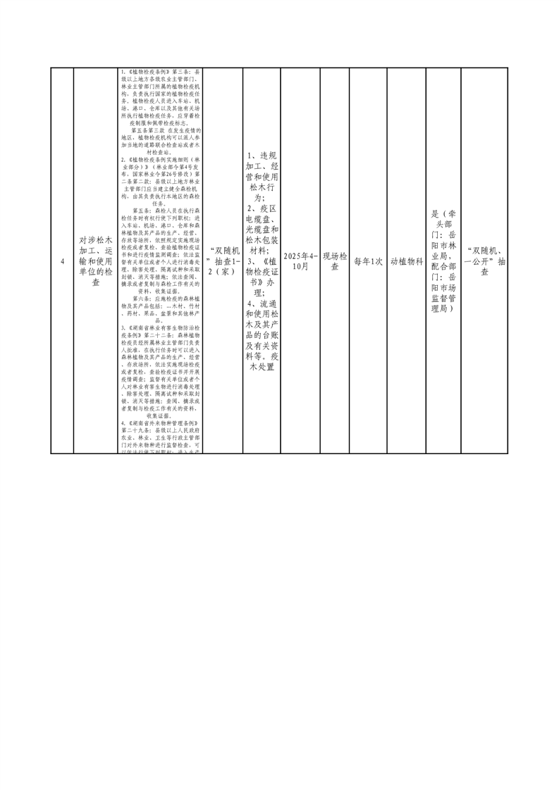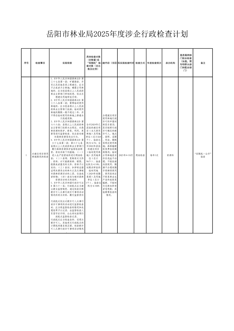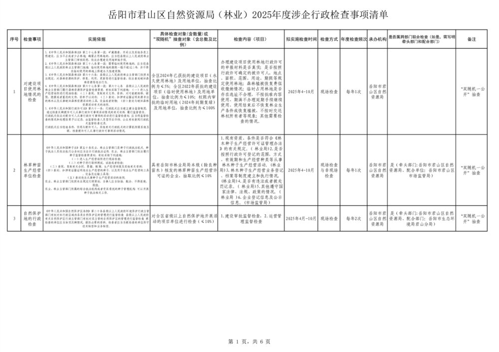 君山区自然资源局(林业)2025年涉企行政检查事项清单