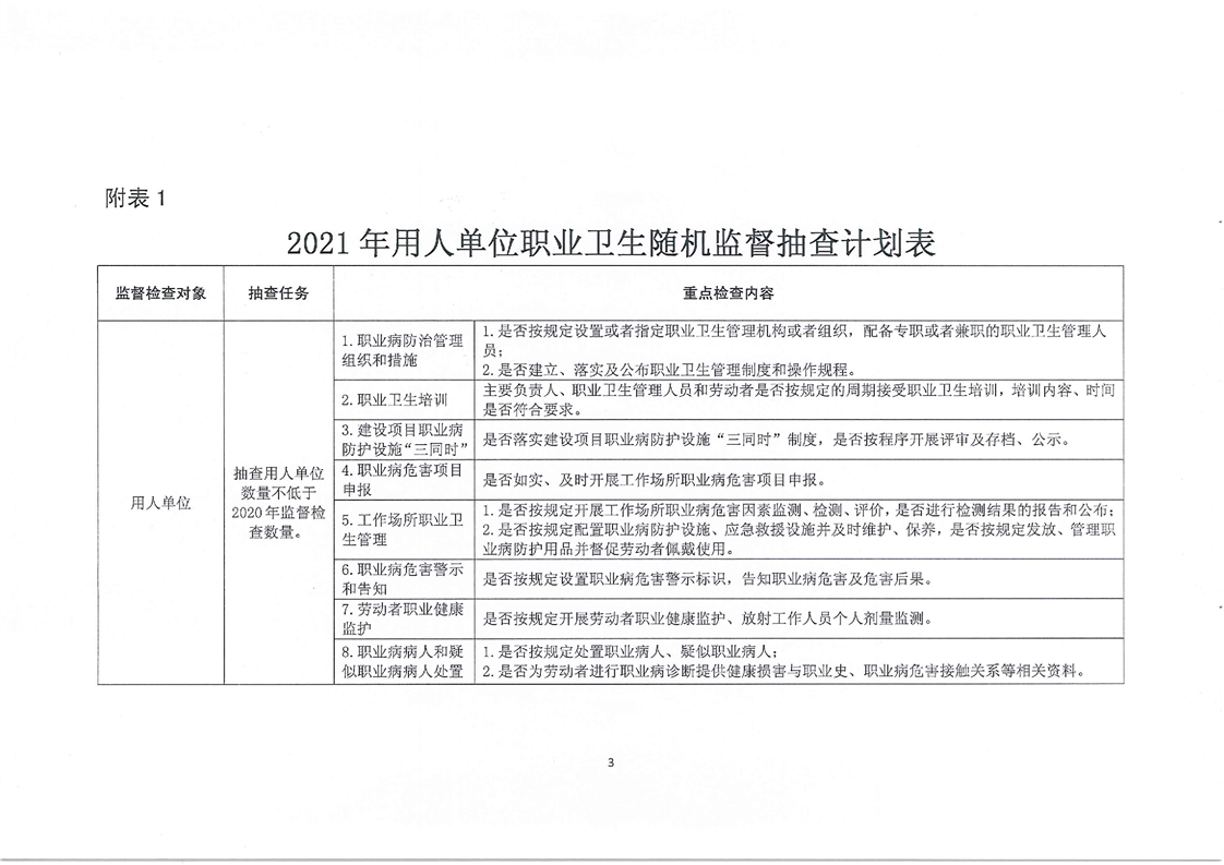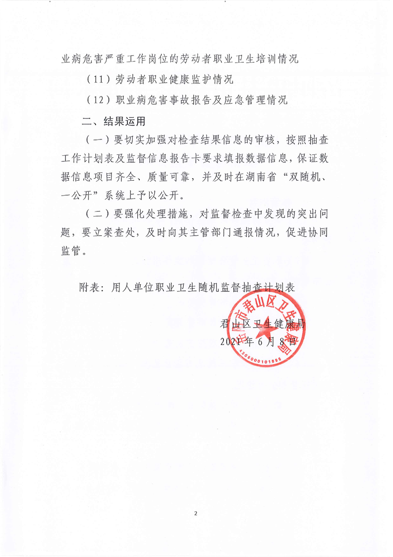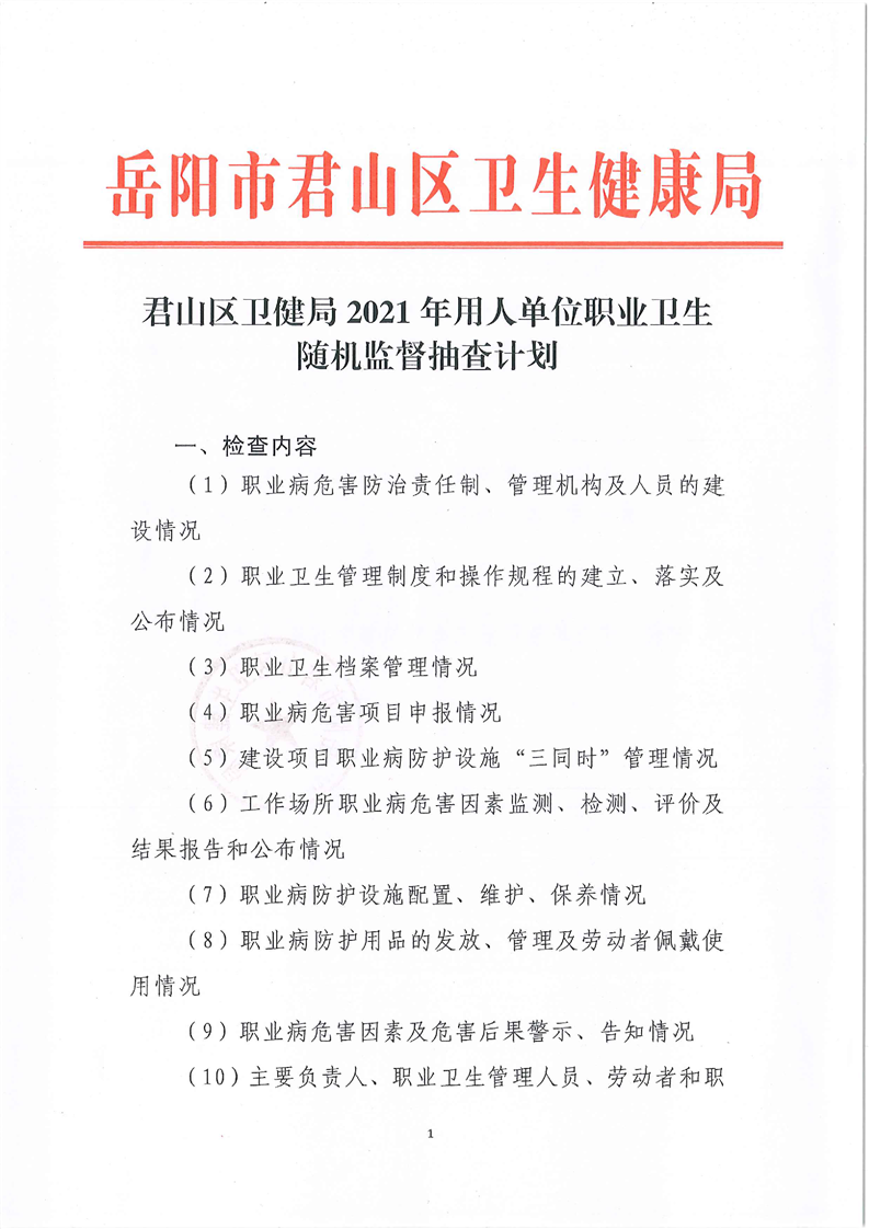 君山区卫健局2021年用人单位职业卫生随机监督抽查计划