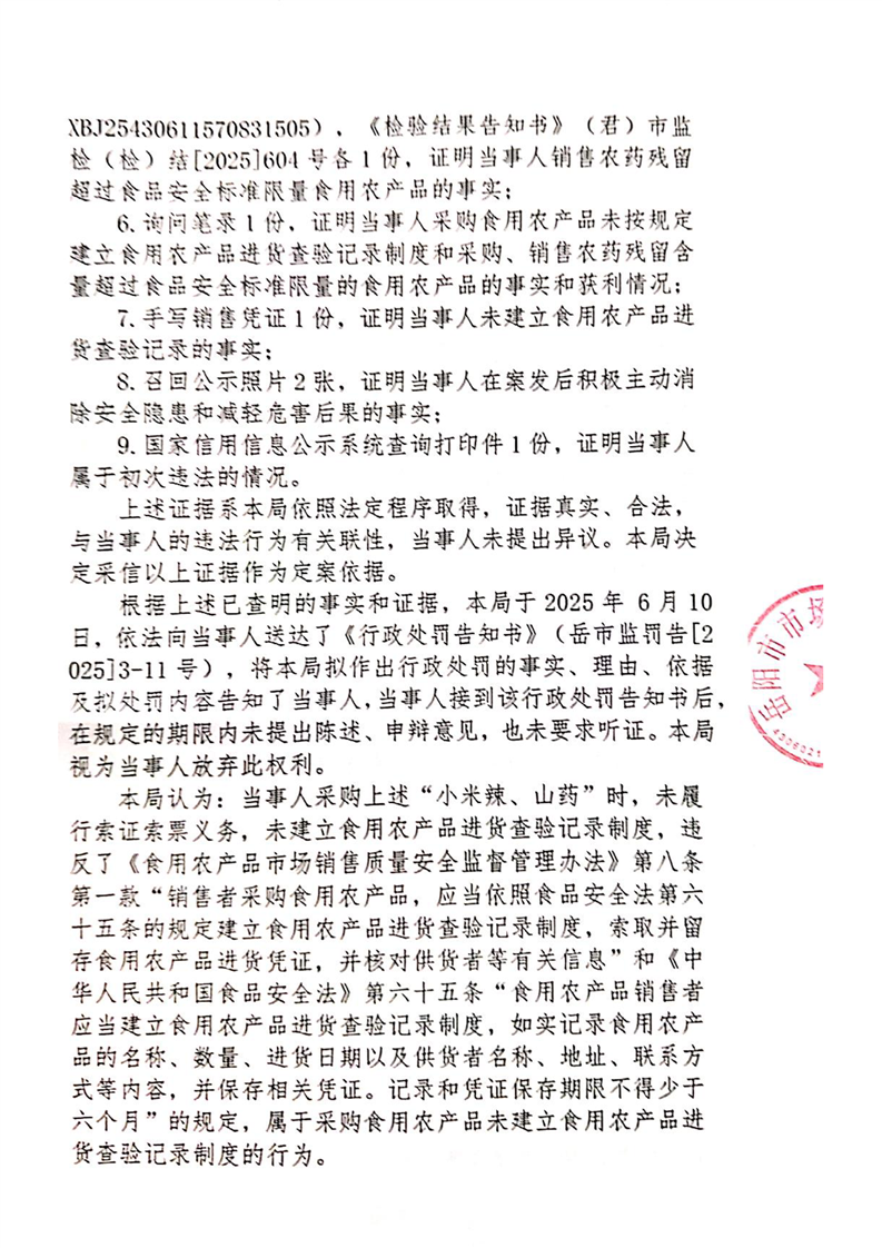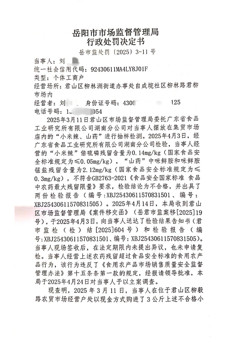 岳阳市市场监督管理局行政处罚决定书 岳市监处罚〔2025〕3-11号
