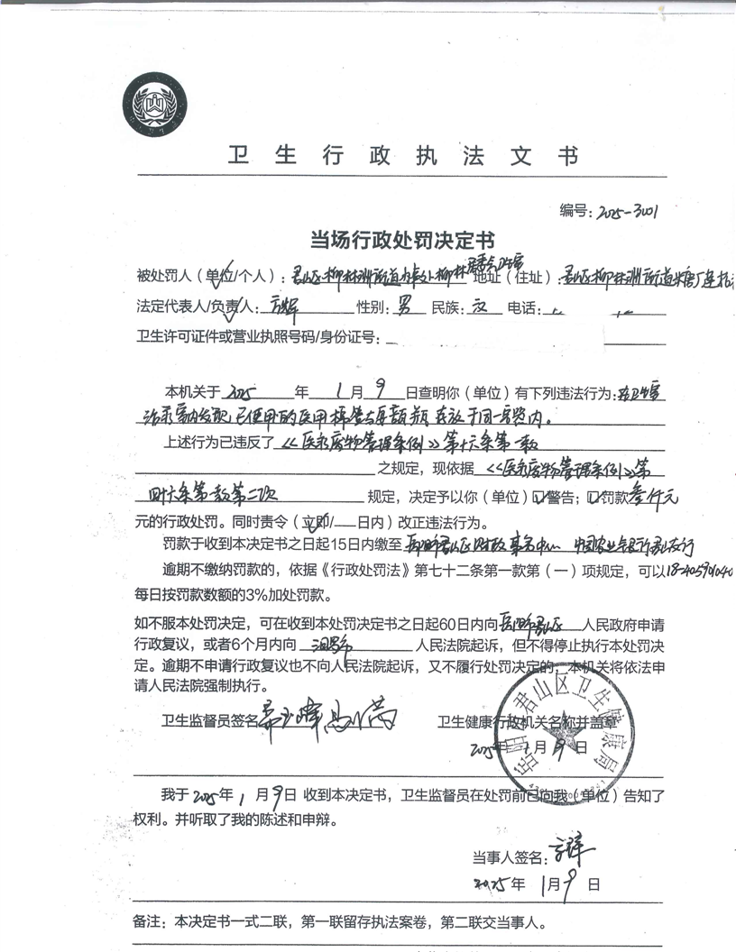 岳阳市君山区卫生健康局行政处罚决定书 编号:2025-3001