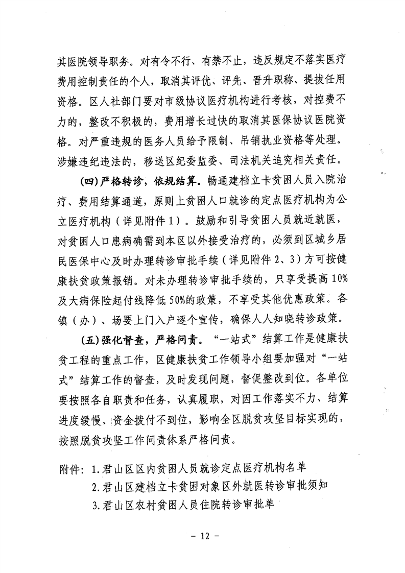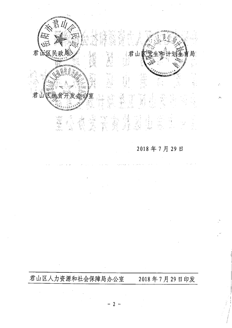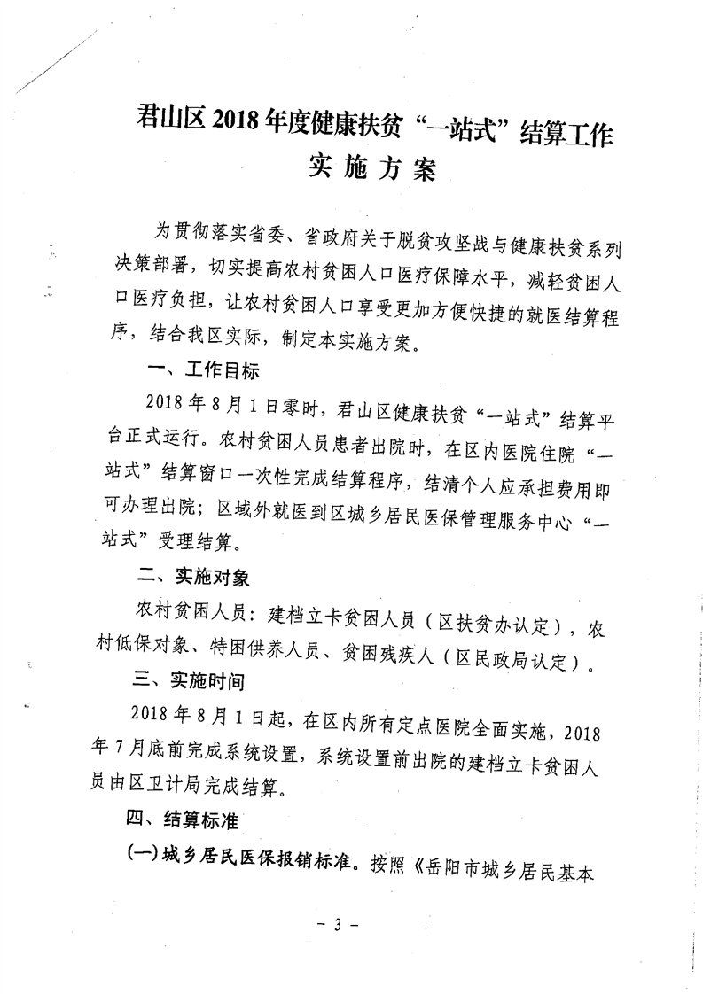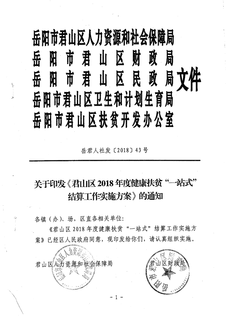关于印发《君山区2018年度健康扶贫“一站式”结算工作实施方案》的通知