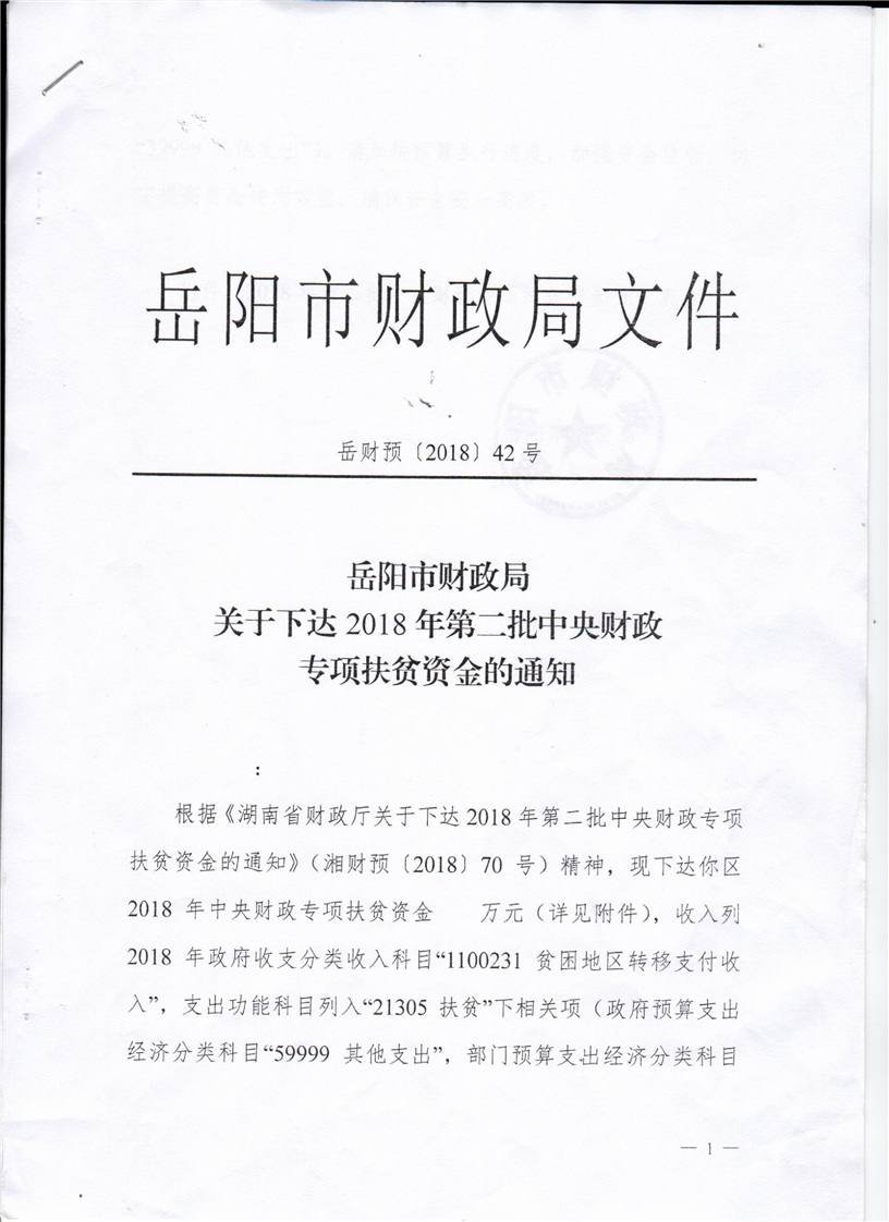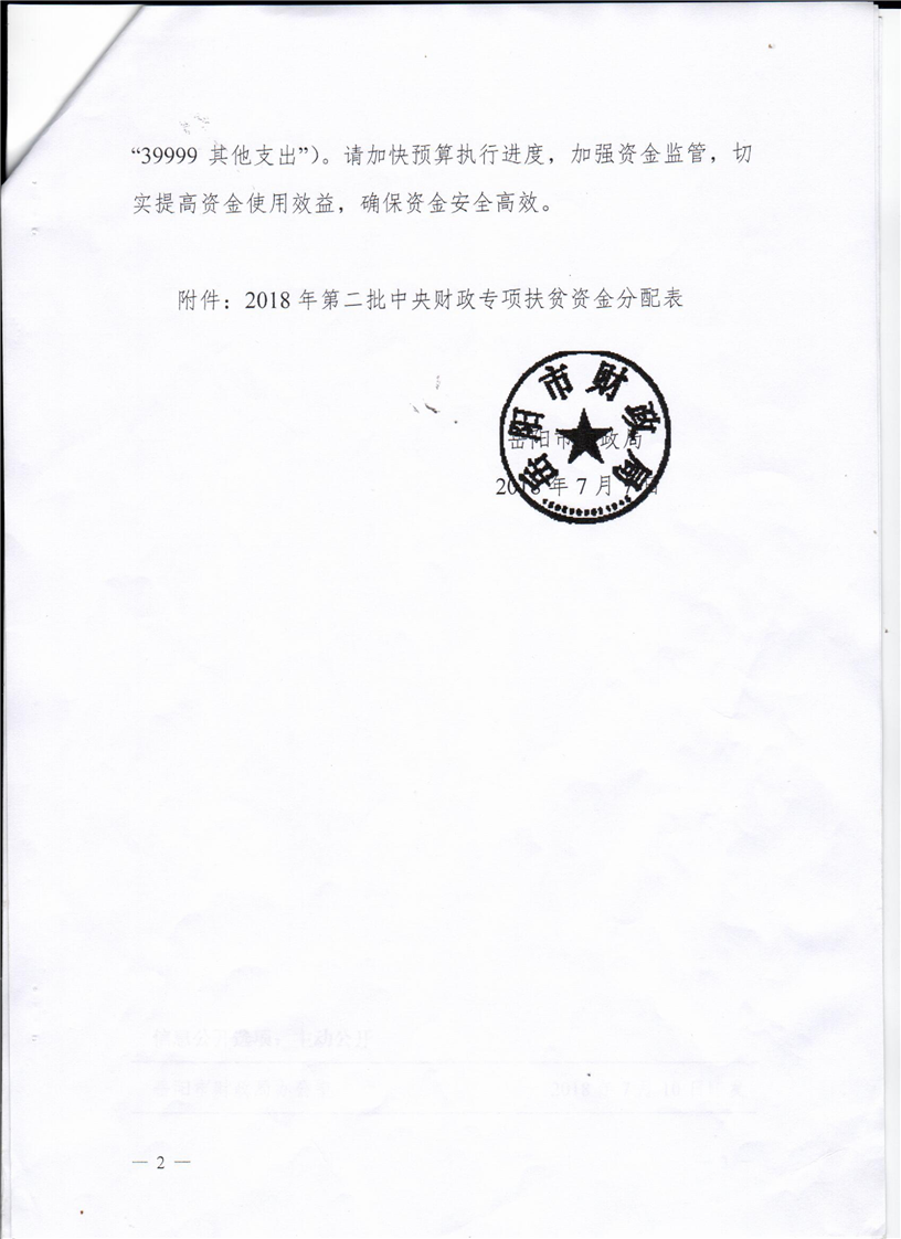 关于下达2018年第二批中央财政专项扶贫资金的通知