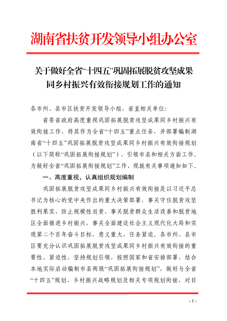 关于做好全省“十四五”巩固拓展脱贫攻坚成果同乡村振兴有效衔接规划工作的通知