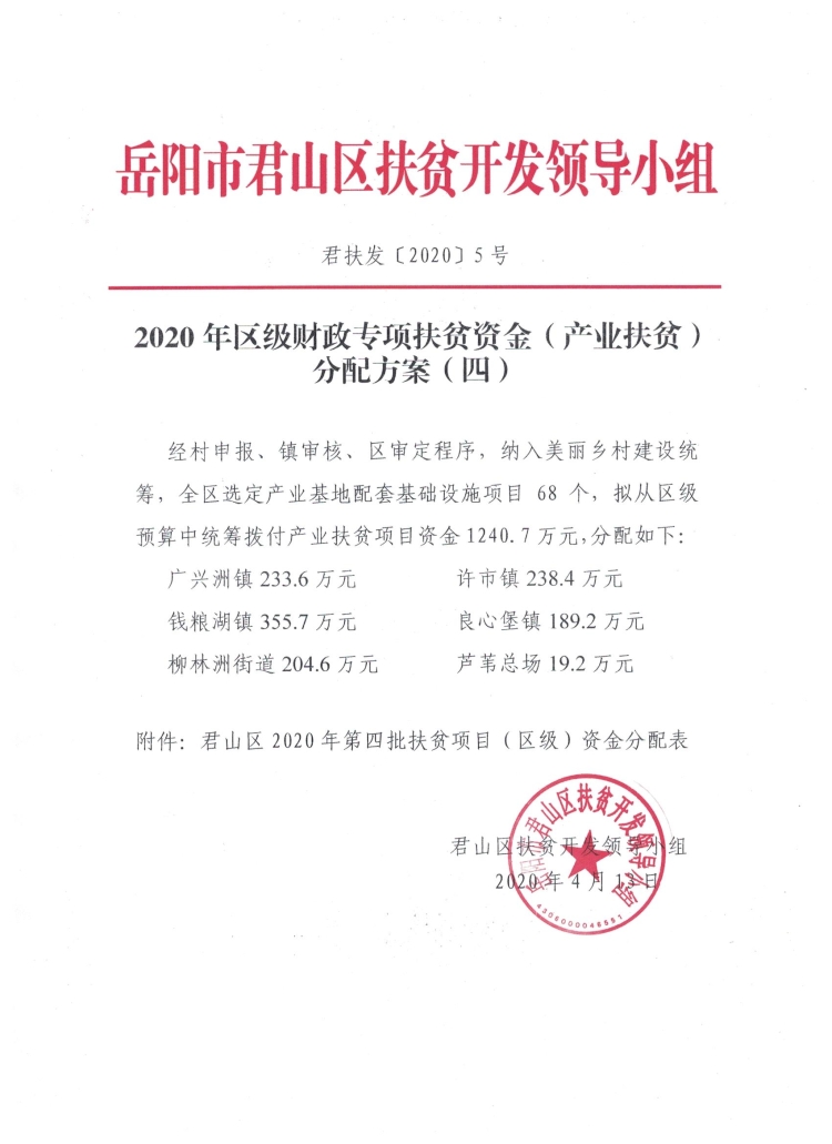 君山区2020年第四批扶贫项目(区级)资金分配表.xlsx