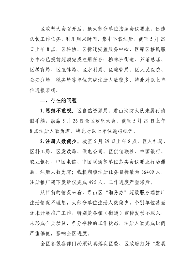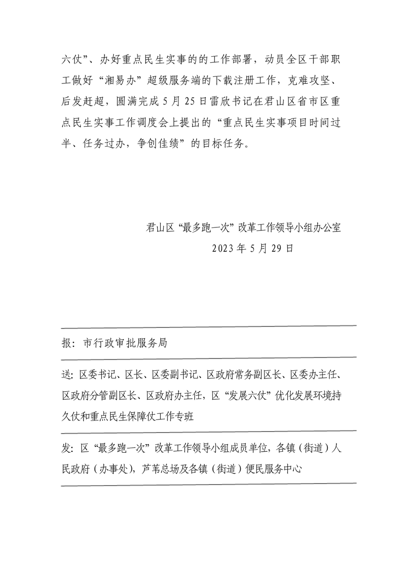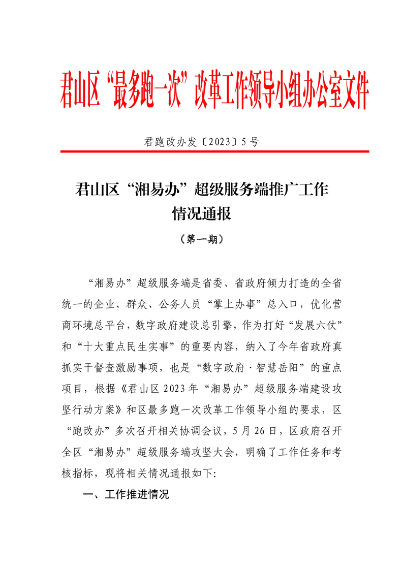 君山区“湘易办”超级服务端推广工作情况通报(第一期)