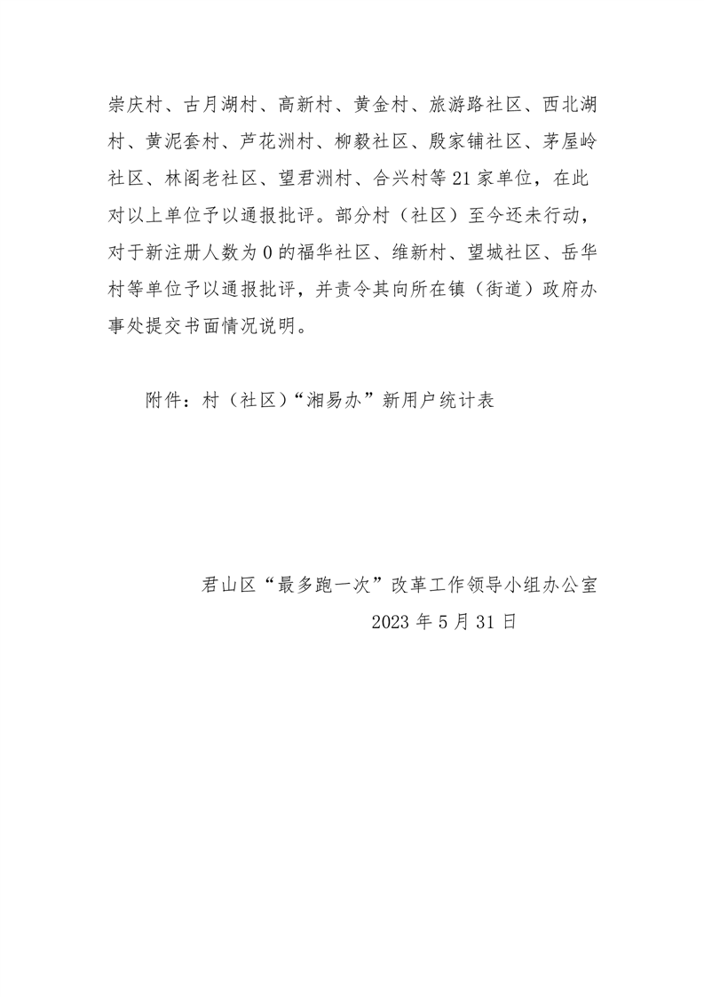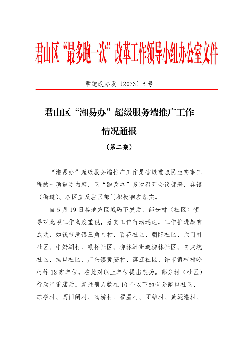 君山区“湘易办”超级服务端推广工作情况通报(第二期)