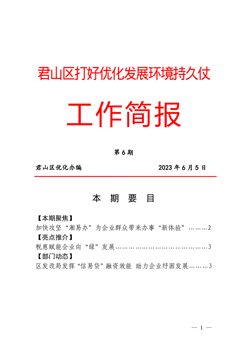 君山区打好优化发展环境持久仗工作简报 (第6期)
